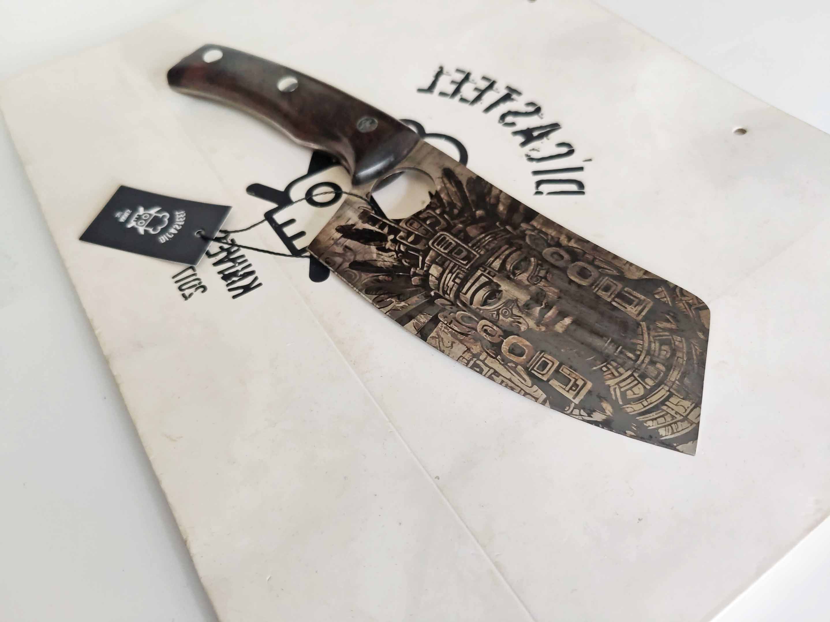 Paired with a handle crafted from rich, luxurious Sapeli wood, the Aztec warrior knife achieves a perfect balance between strength, comfort, and aesthetic appeal. The natural texture and grain of the Sapeli wood provide not only an ergonomic grip but also a touch of sophistication that transforms every culinary moment into an art form.