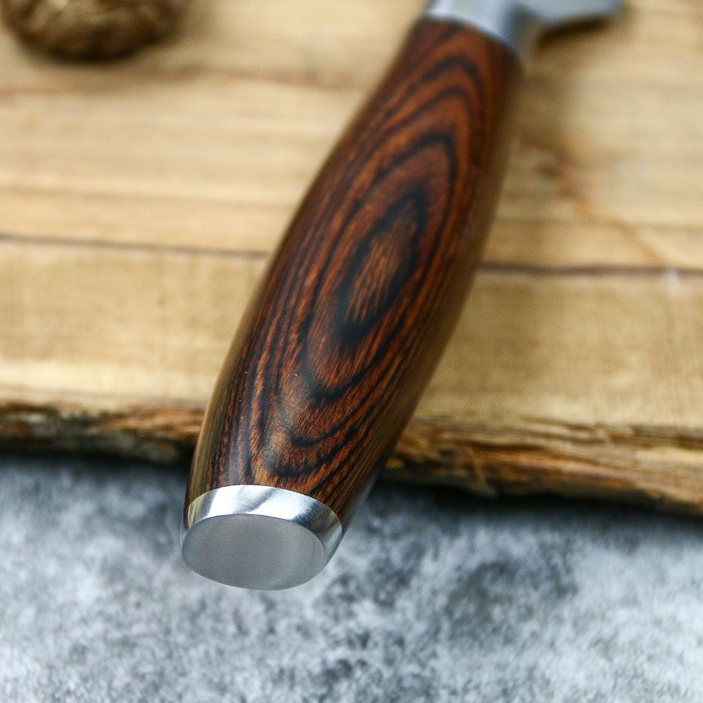 This Boning Knife VG10 Pakka Handle is more than just a handle; it embodies style and usefulness. It is made of Pakkawood, a substance renowned for its tensile strength and moisture resistance. Your kitchen tools gain a touch of refinement and offer a firm grip. It demonstrates your dedication to excellence in all facets of your culinary journey.