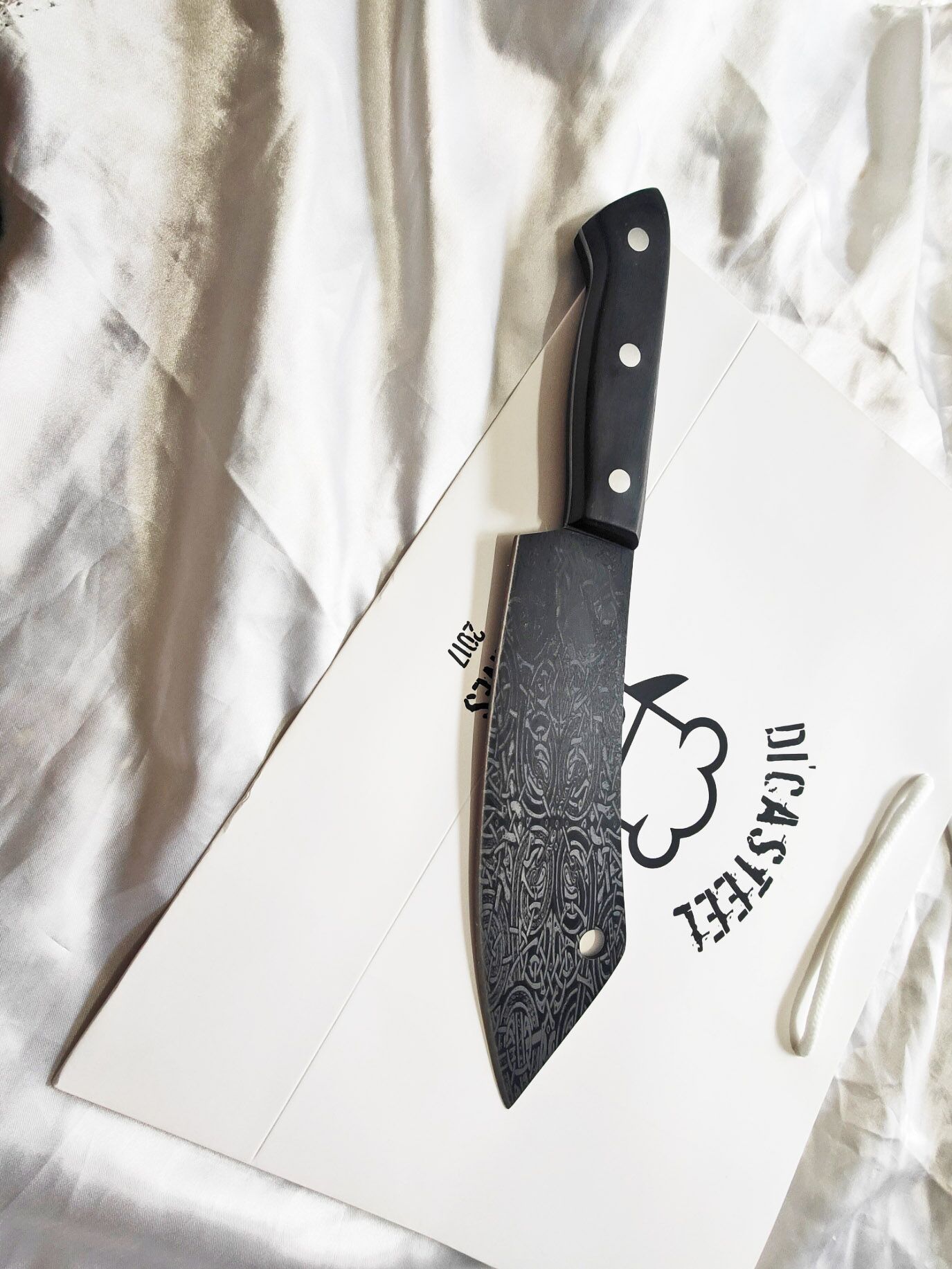 All Black Butcher Knife Irish Celtic Engraved