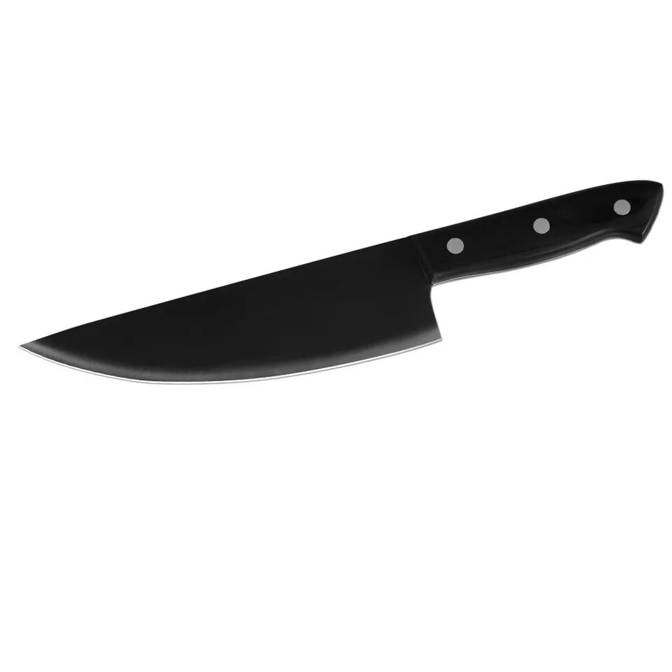 The cook Knife All Black brings culinary fantasies to life in the hands of a talented cook. Its sophisticated, all-black design boosts the aesthetics of any kitchen and oozes sophistication. With this knife, accuracy becomes art, and each dish becomes a work of art.