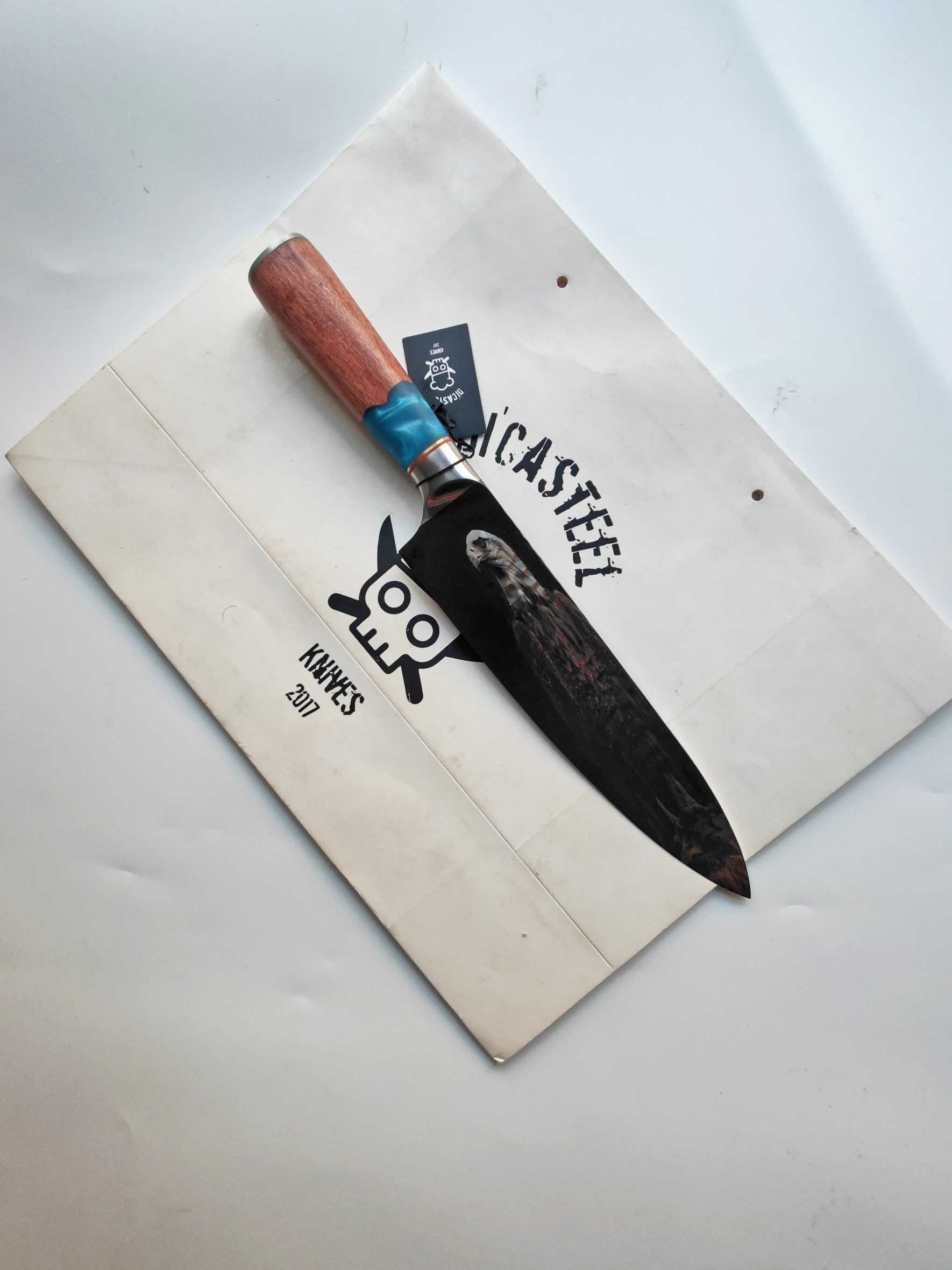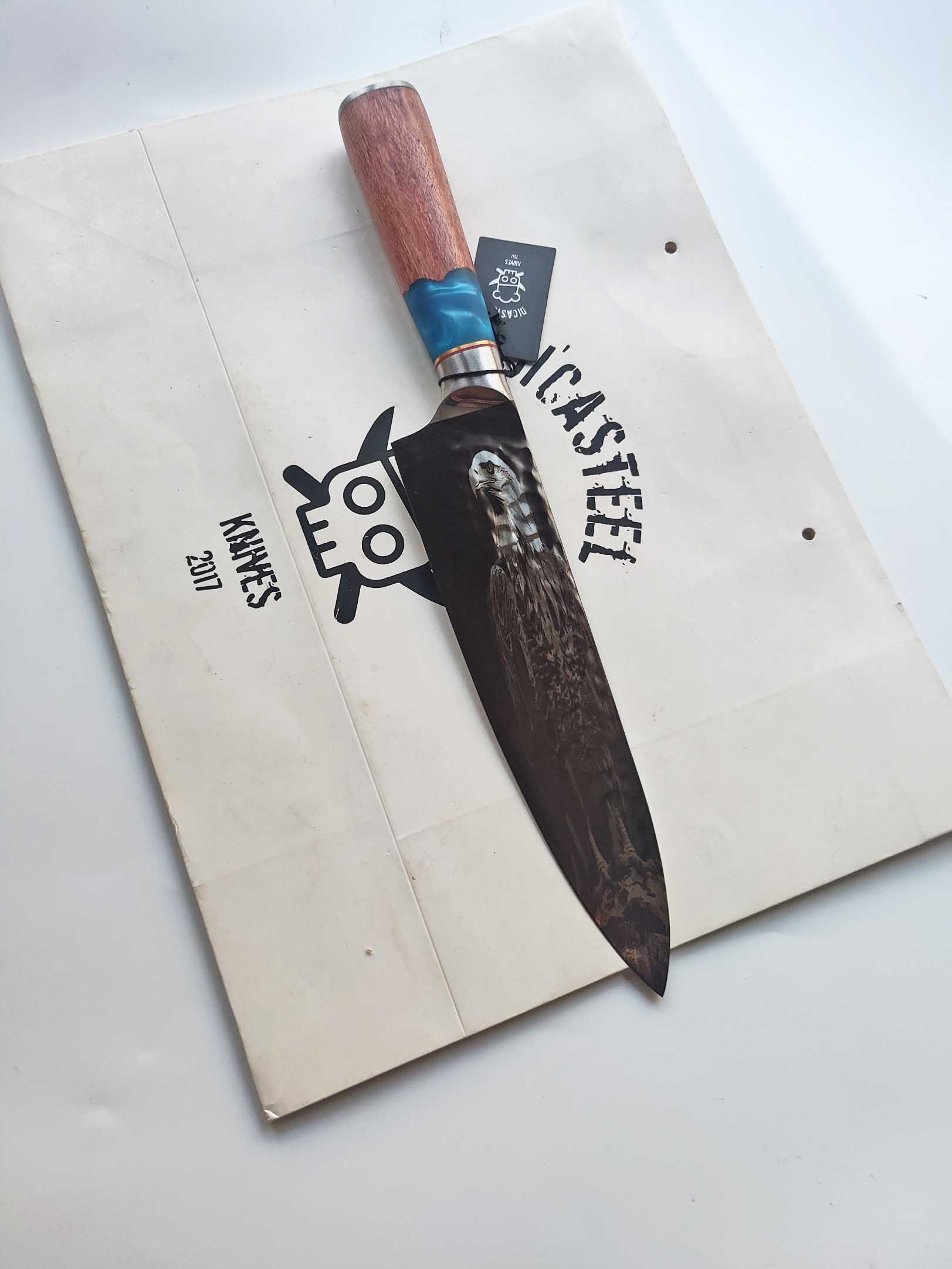 Chef Knife with Wood Resin Handle and Eagle Engraving – A Symbol of Strength, Freedom, and Precision