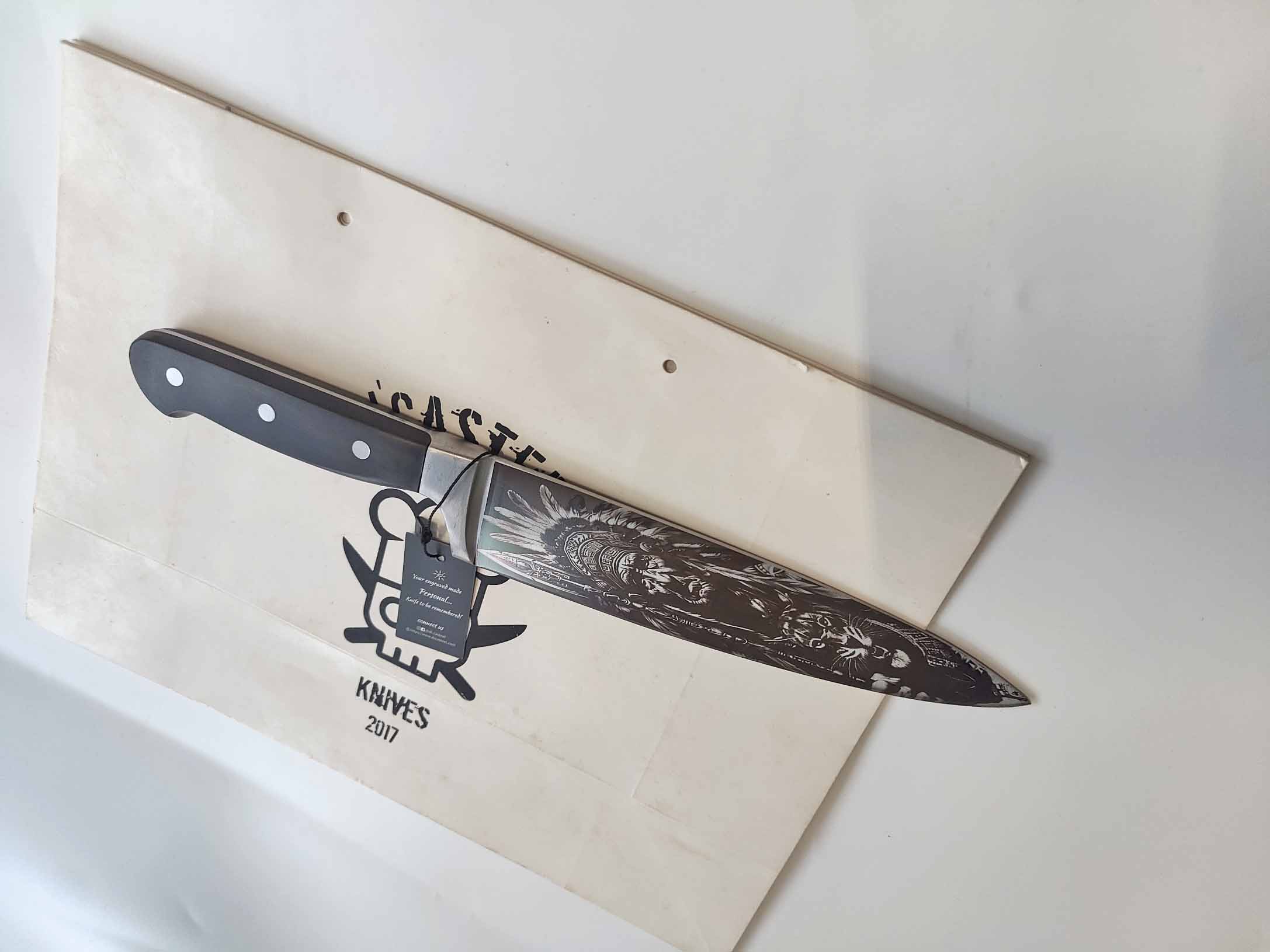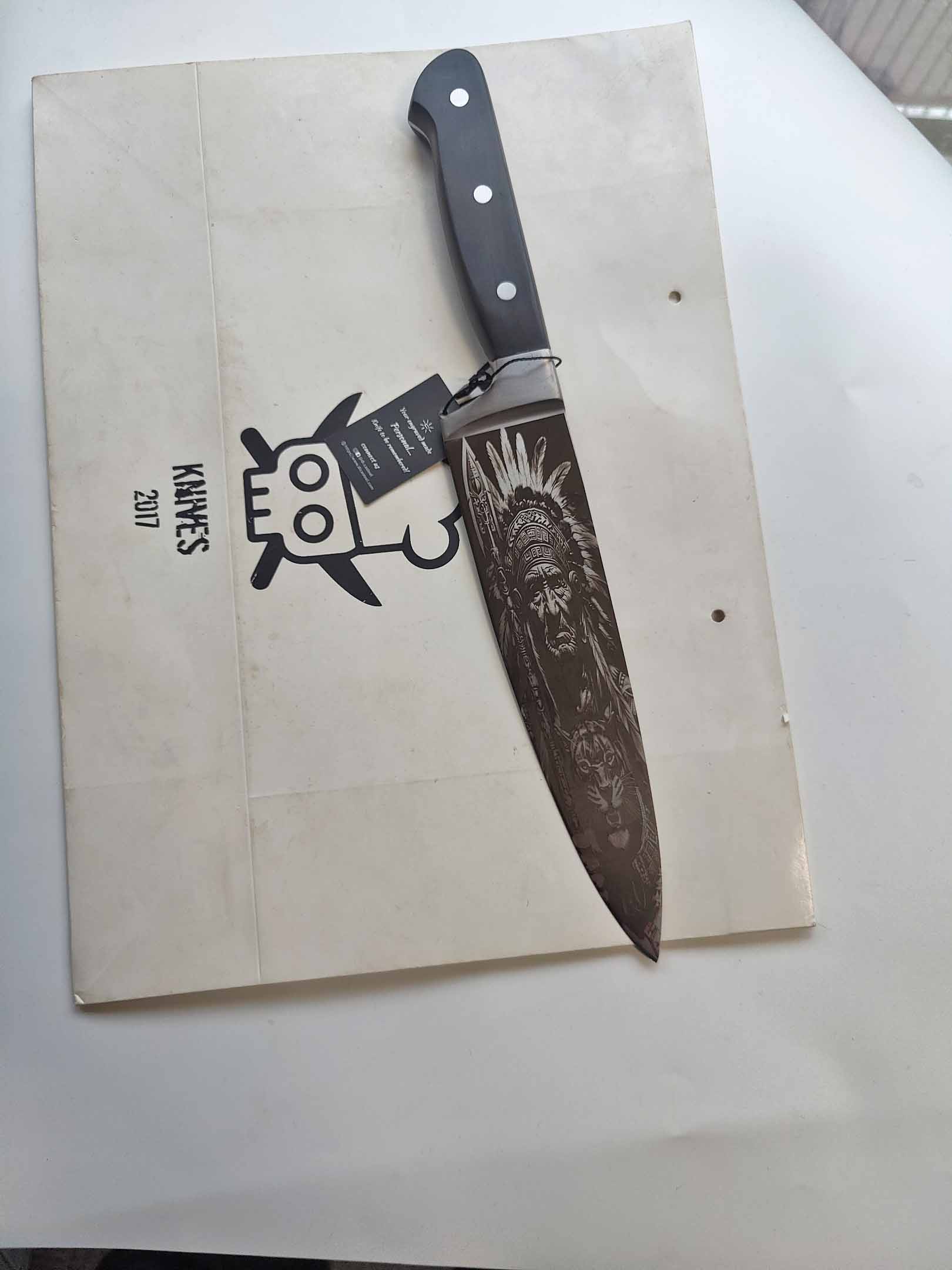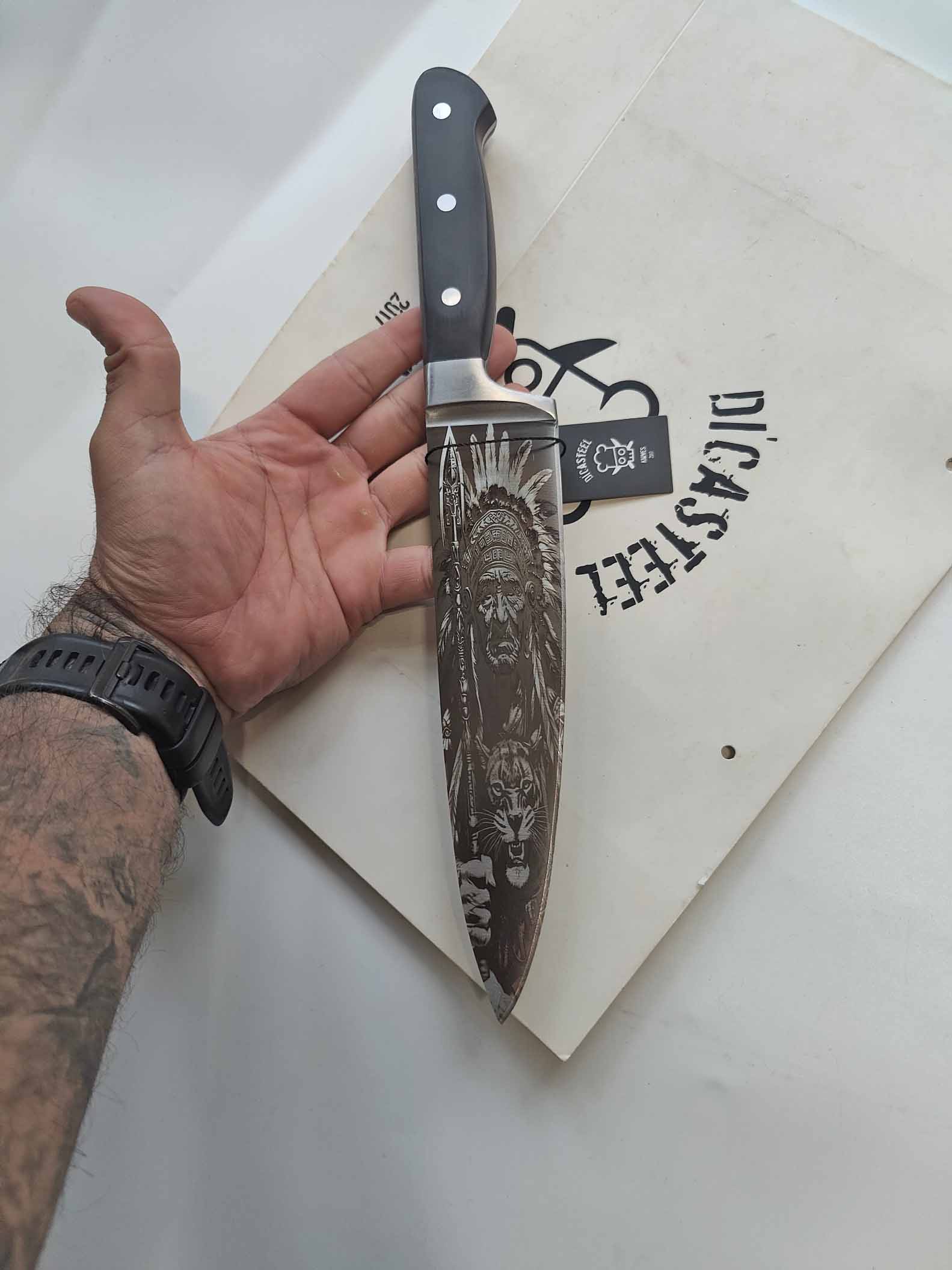 Chef Knife with Feathered Warrior Engraving – A Symbol of Precision, Courage, and Timeless Craftsmanship