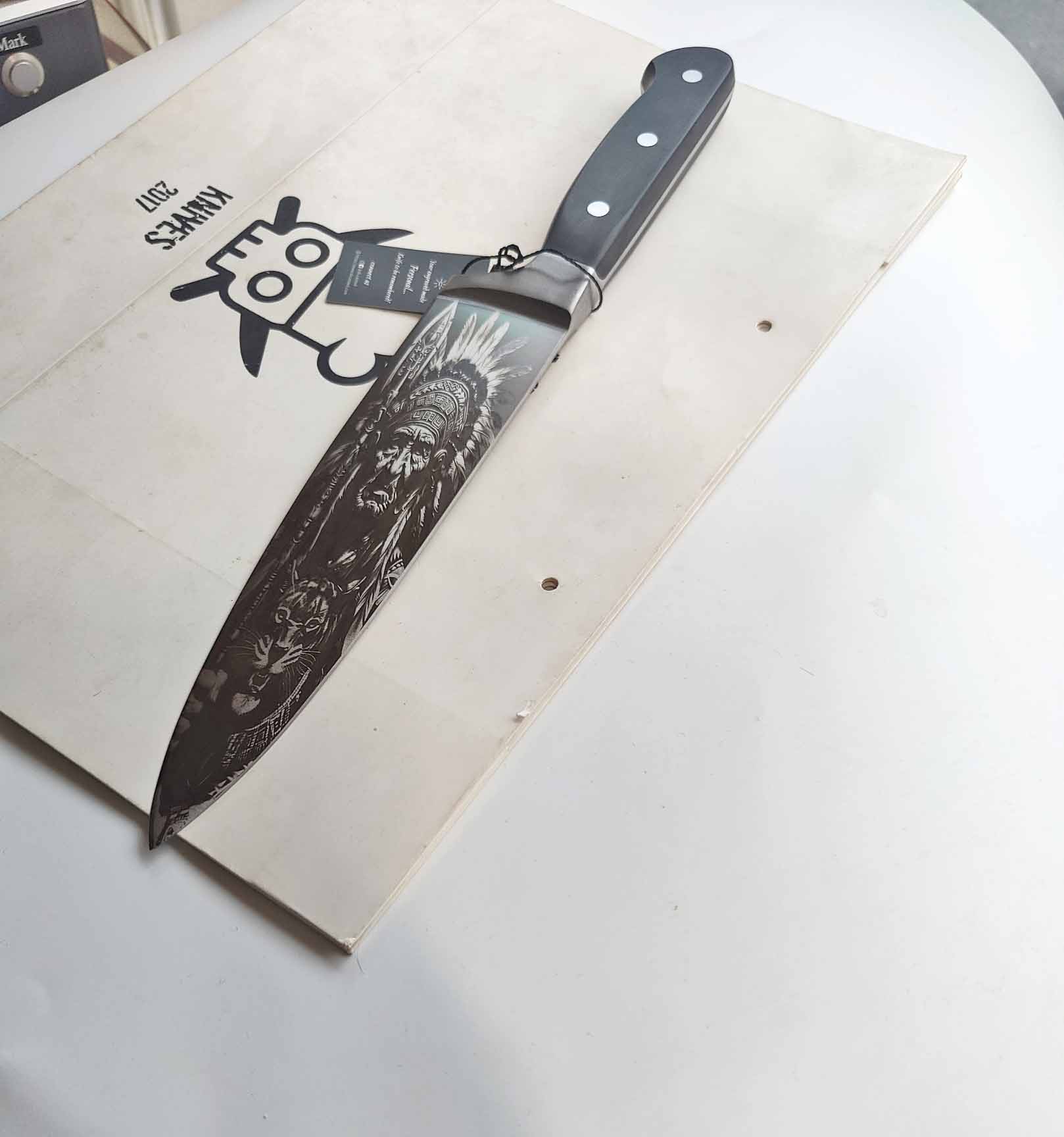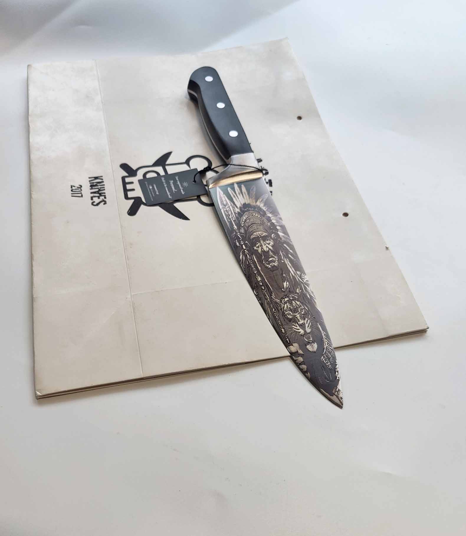 Home>Products>Chef knives>Chef Knife with Feathered Warrior Engraving – A Symbol of Precision, Courage, and Timeless Craftsmanship