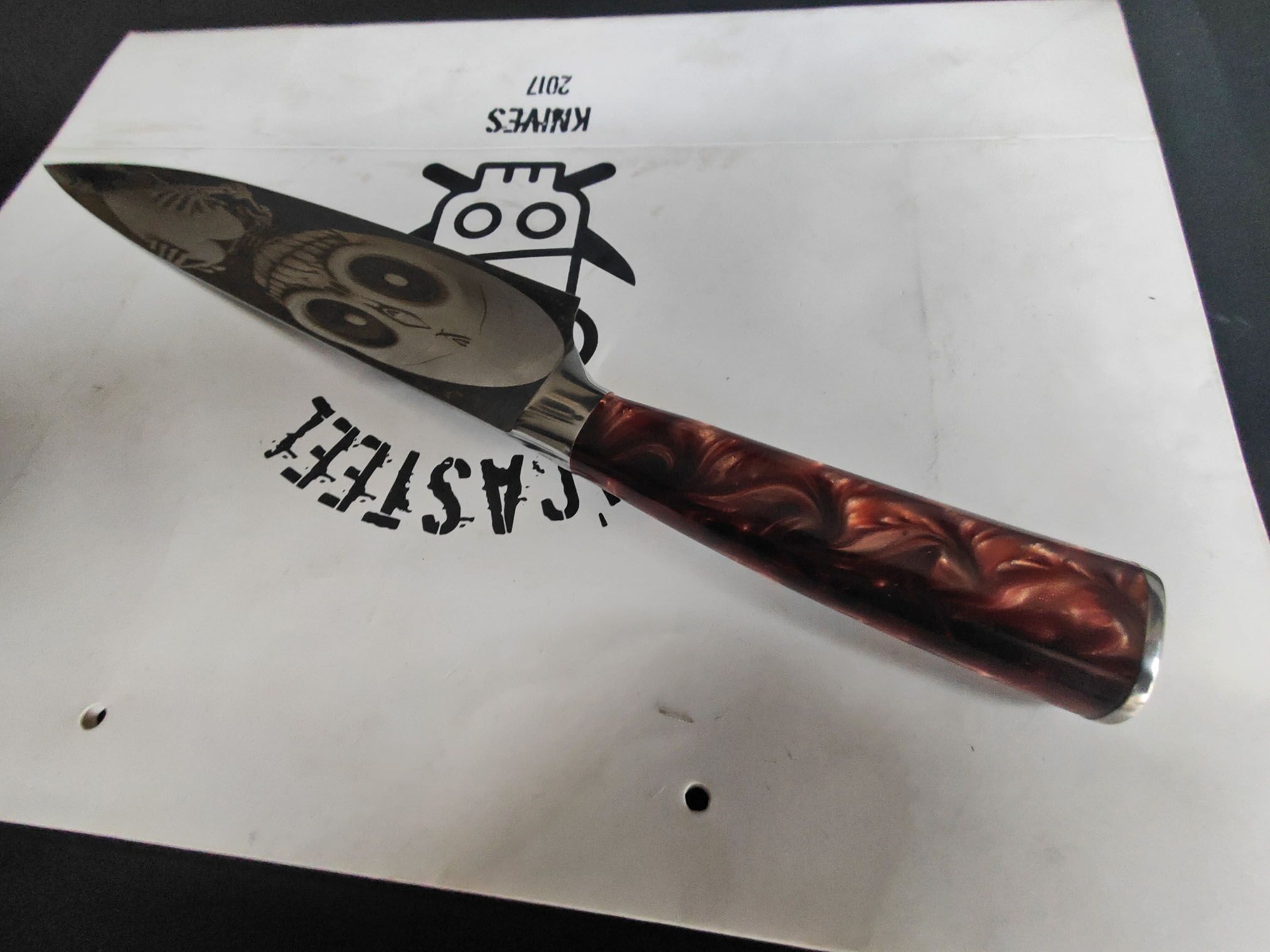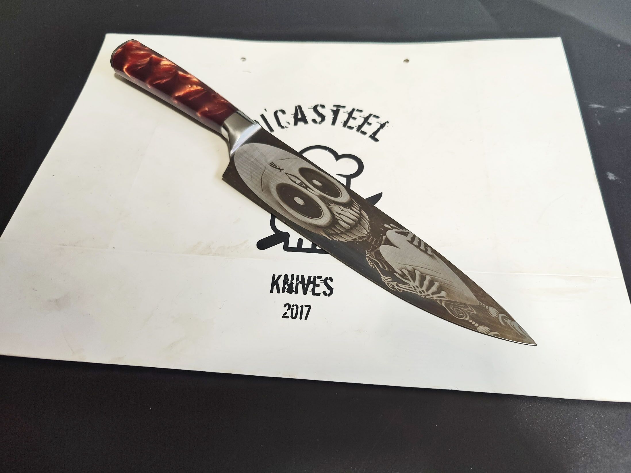 Elevate your culinary experience with our Chef Knife Resin Handle offering cranium engravings. With its impeccable craftsmanship, ergonomic design, and symbolic depth, it’s more than just a device – it is a assertion of creativity, individuality, and resilience. Order now and embark on a culinary journey wherein every slice becomes a work of artwork and every meal tells a tale.
