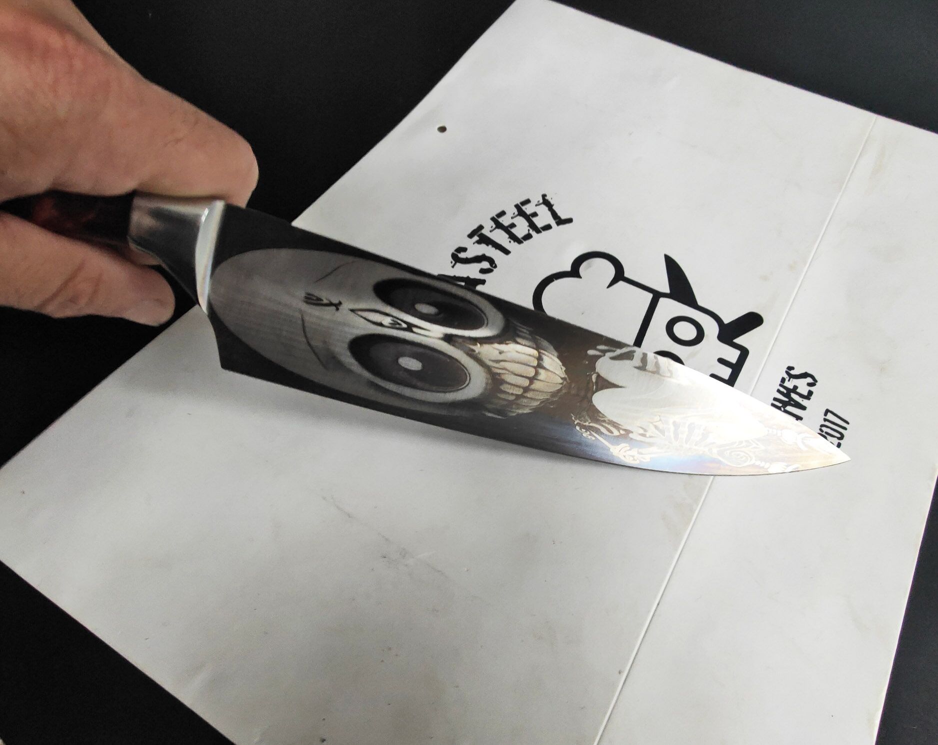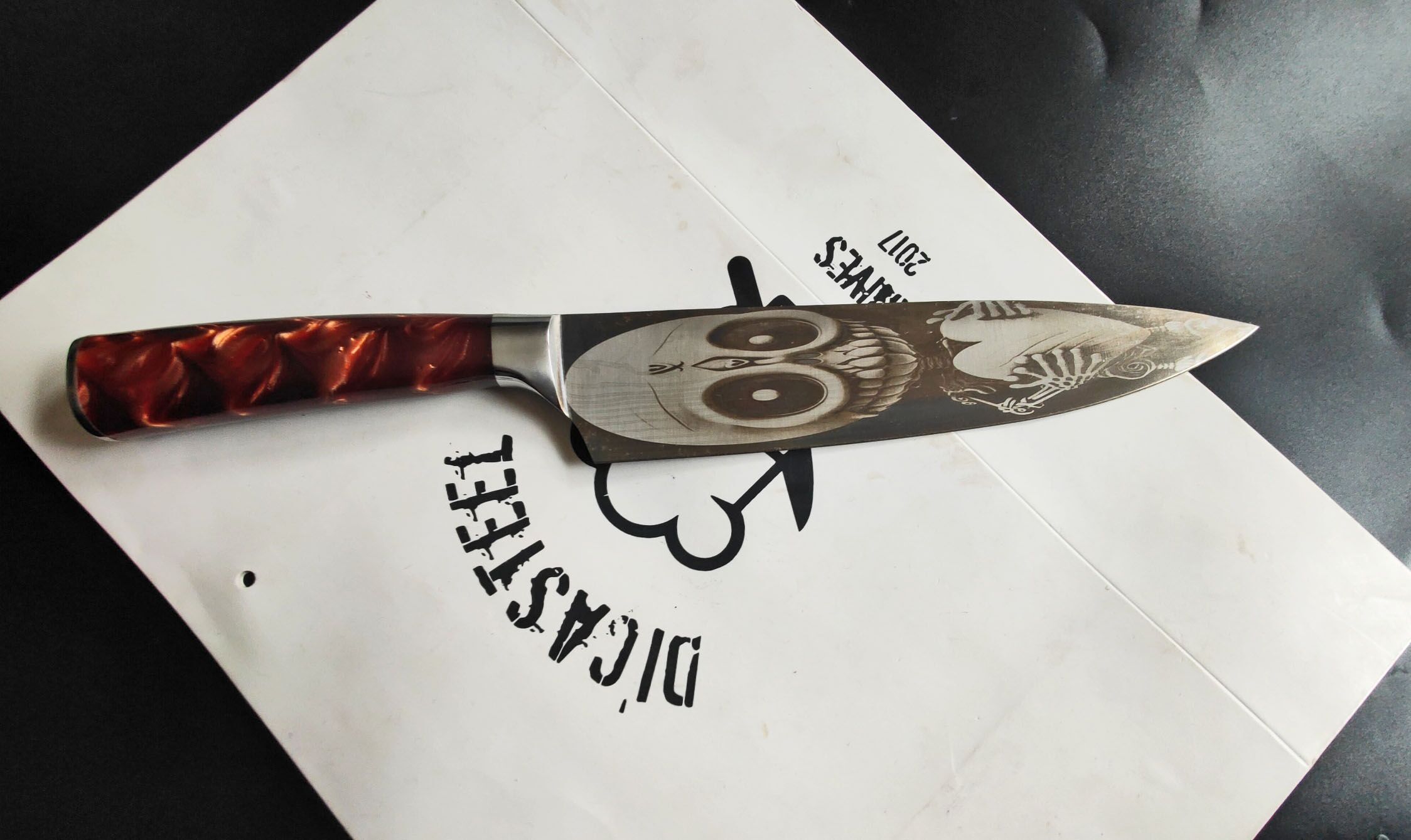 Embracing the Symbolism: Chef Knife with Resin Handle and Skull Engravings