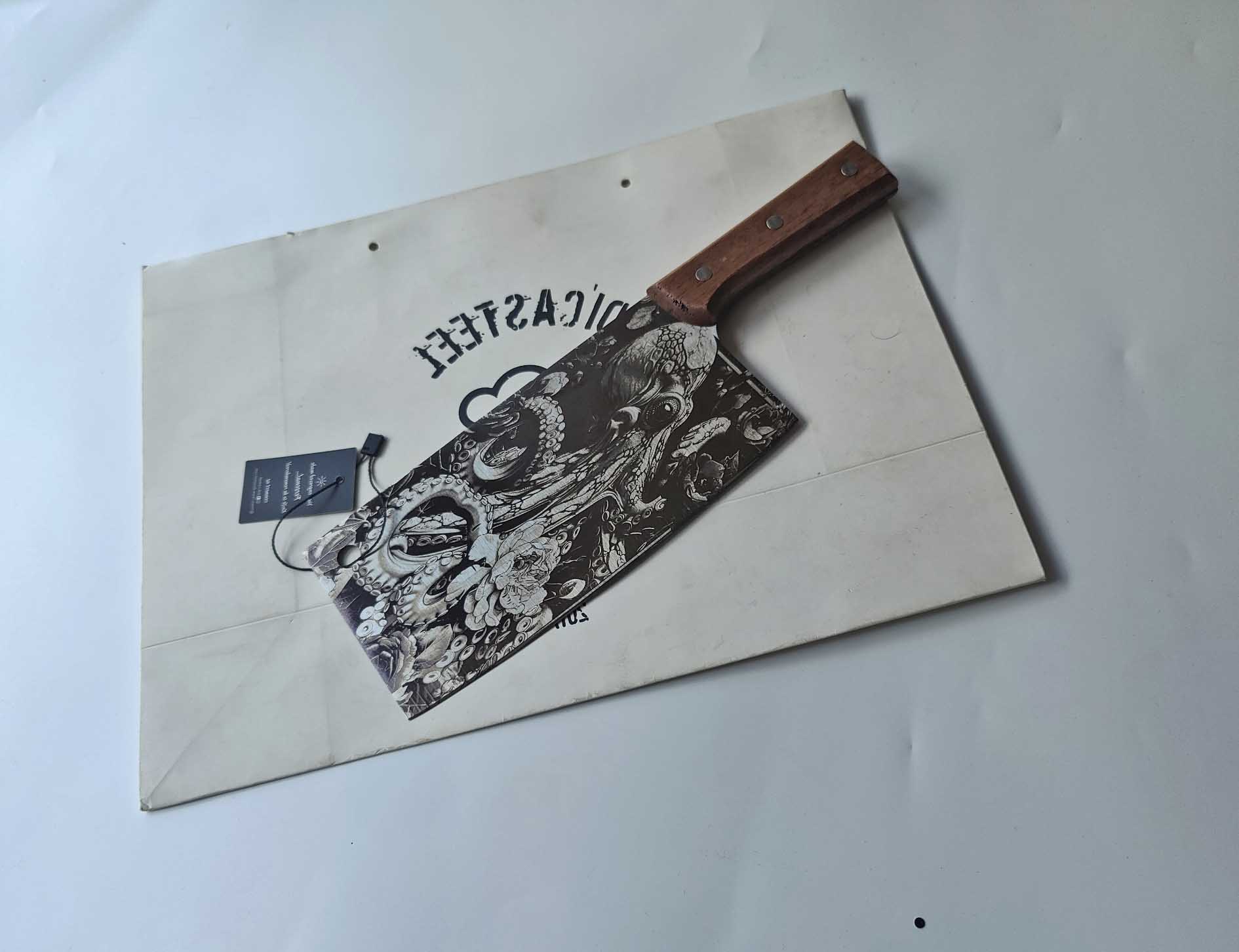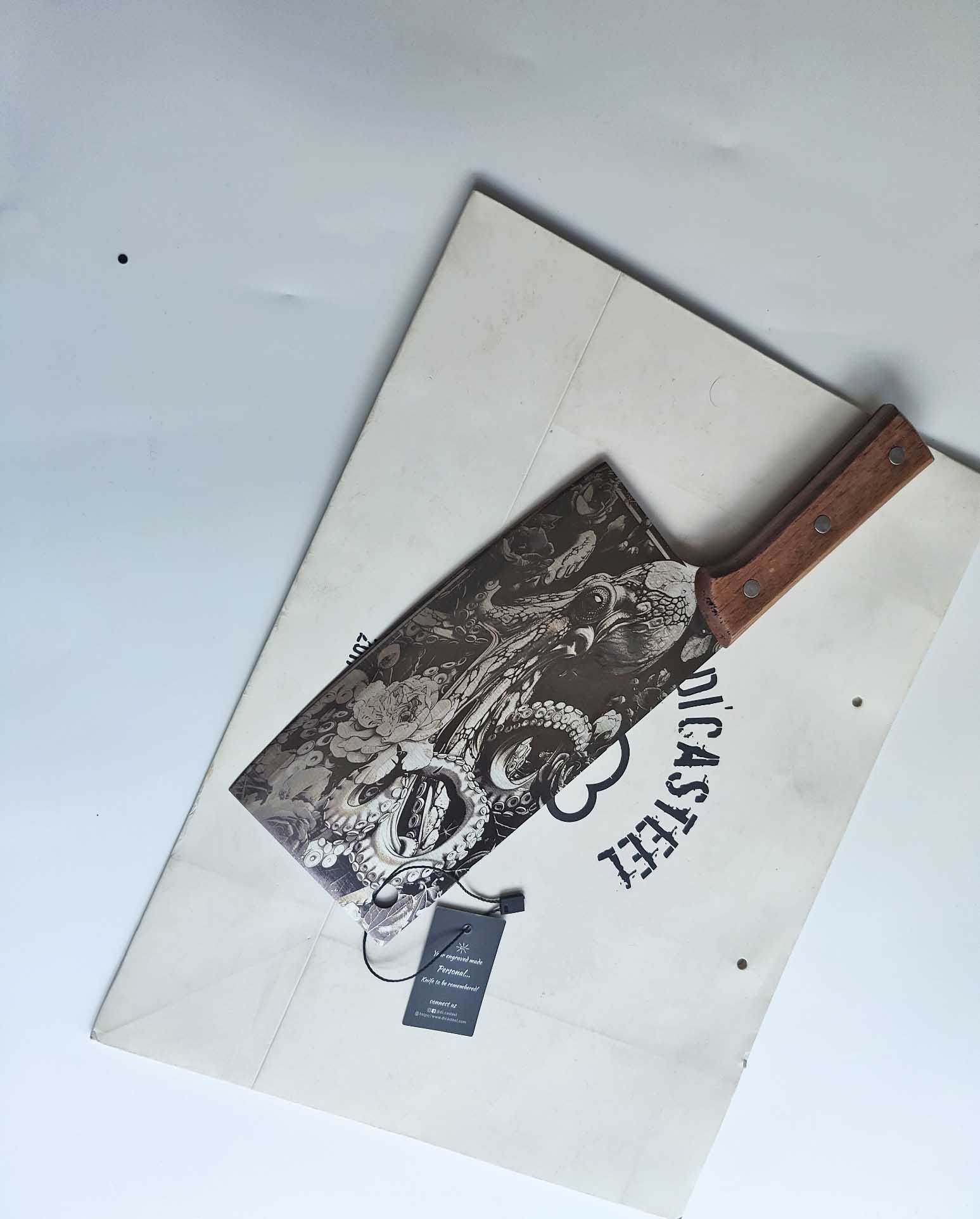 The Cleaver Knife with Art Octopus Engraving isn’t just a culinary tool—it’s a reflection of artistry, emotion, and strength. Whether used daily or cherished as a collector’s piece, it embodies a perfect harmony between craftsmanship and character.
