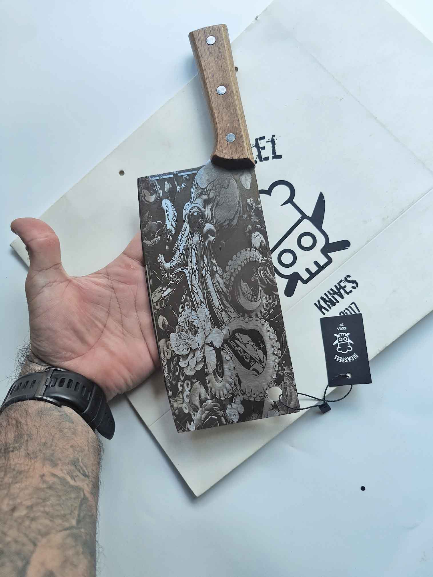 Cleaver Knife with Art Octopus Engraving – A Masterpiece of Depth, Power, and Precision