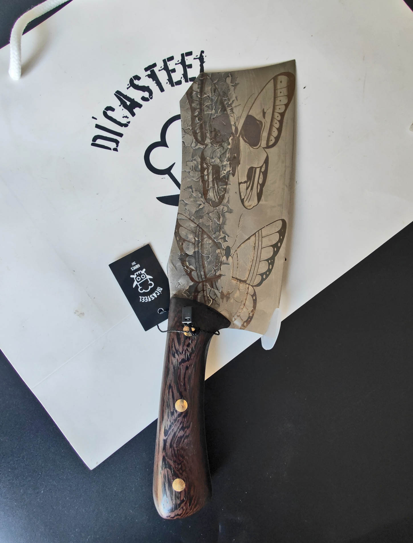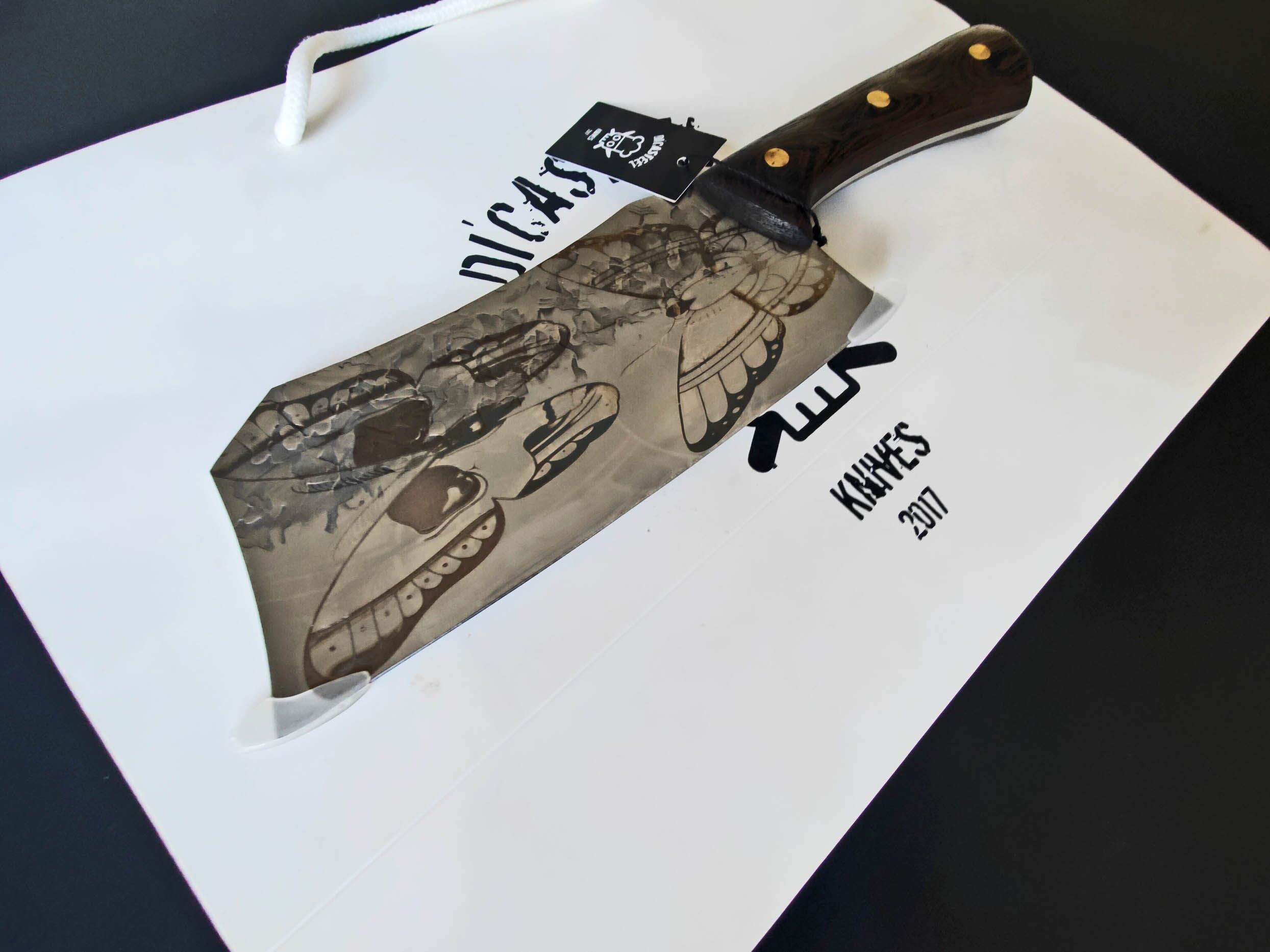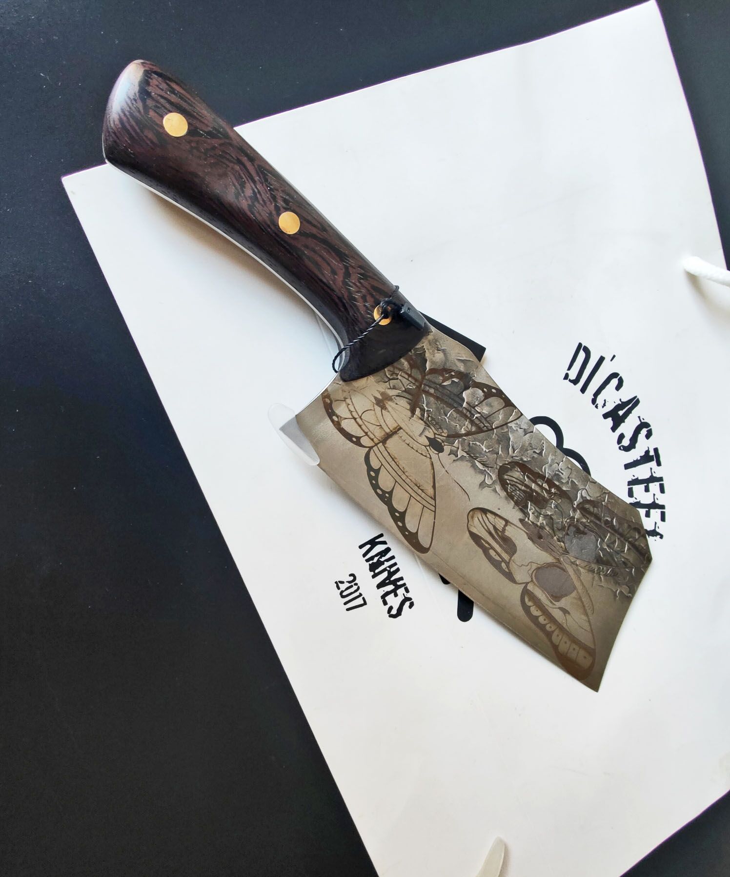 Unveiling the Dark Elegance: Butterfly Skull Engraving on Cleaver Knife