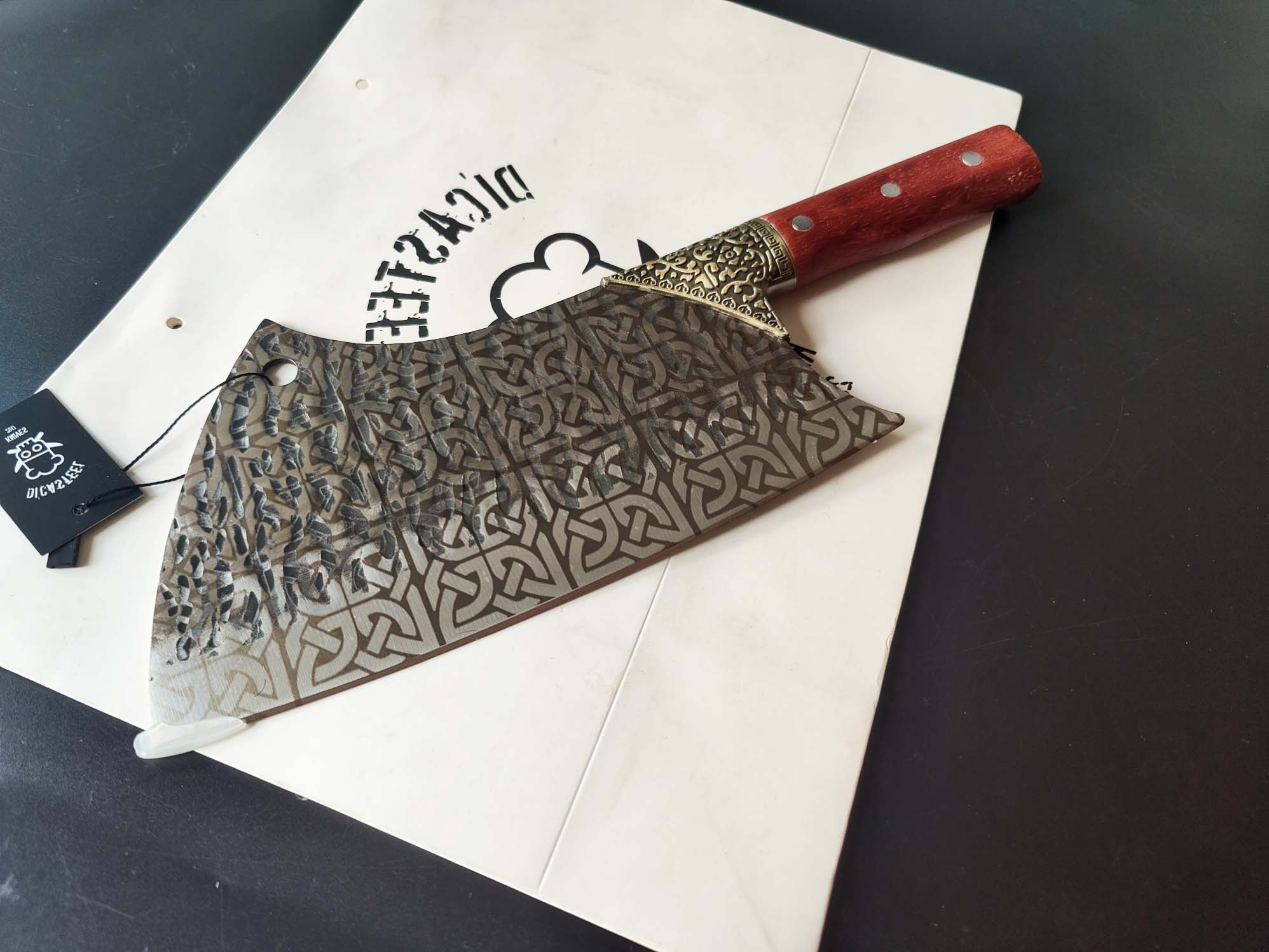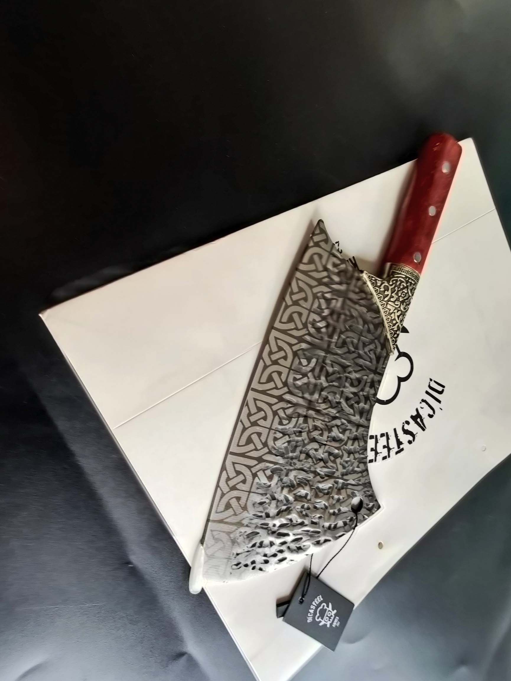 The Heavy Cleaver Knife with Celtic Symbols Engraving is designed to carry out surprisingly properly in numerous kitchen duties. Its strong blade and cushty take care of make it suitable for slicing, slicing, and dicing both difficult and sensitive components. The cleaver’s weight and balance are optimized to supply maximum pressure with minimum effort, making it an imperative device for any serious cook.