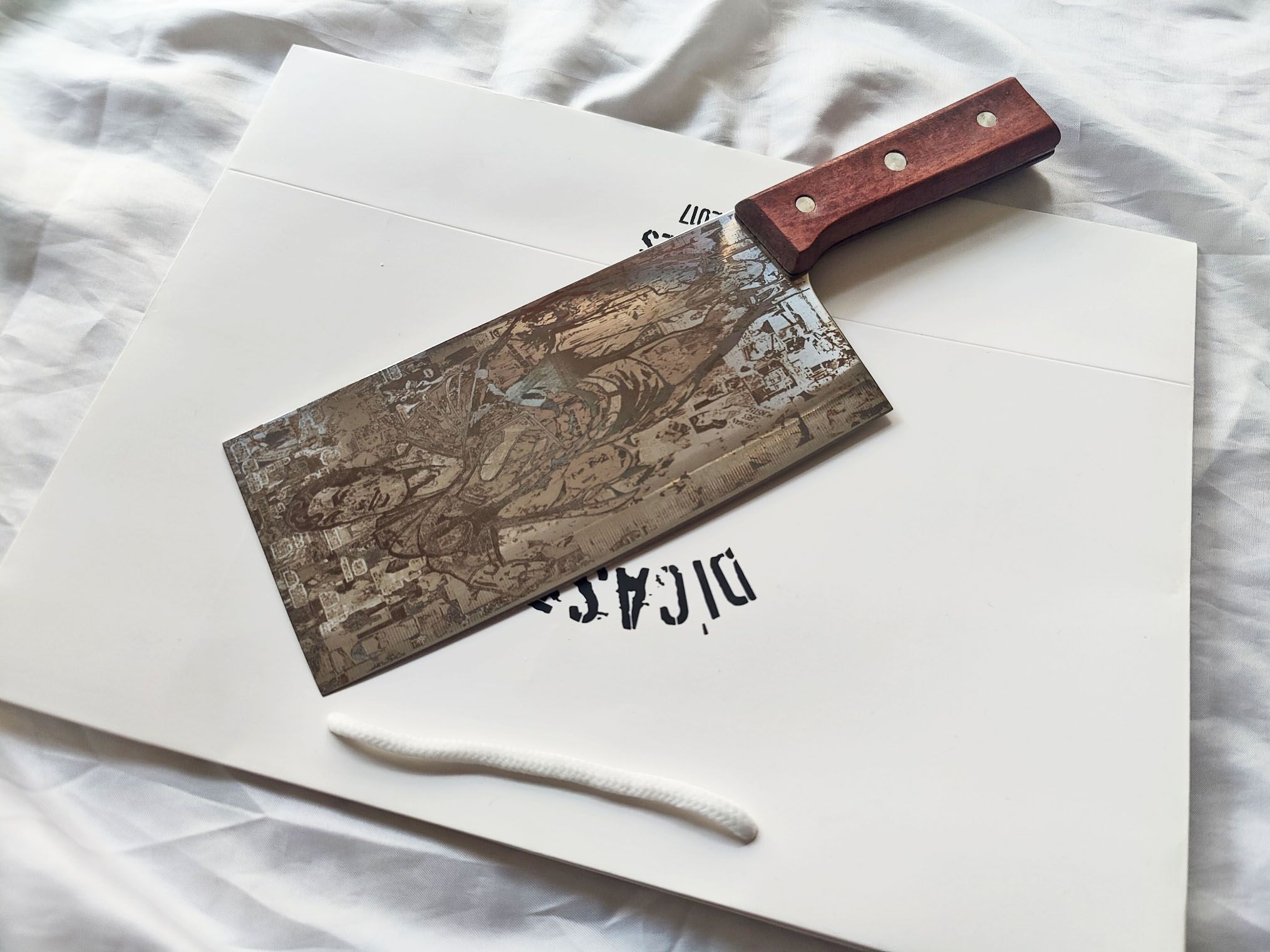 The Cleaver Knife Custom Superman Engraved is unique because of its eye-catching laser-printed design, which honors the famous superhero’s logo. Your cooking experiences gain a heroic touch from this unique design. You’ll feel as though you’re using the Man of Steel’s strength with each slice and chop.