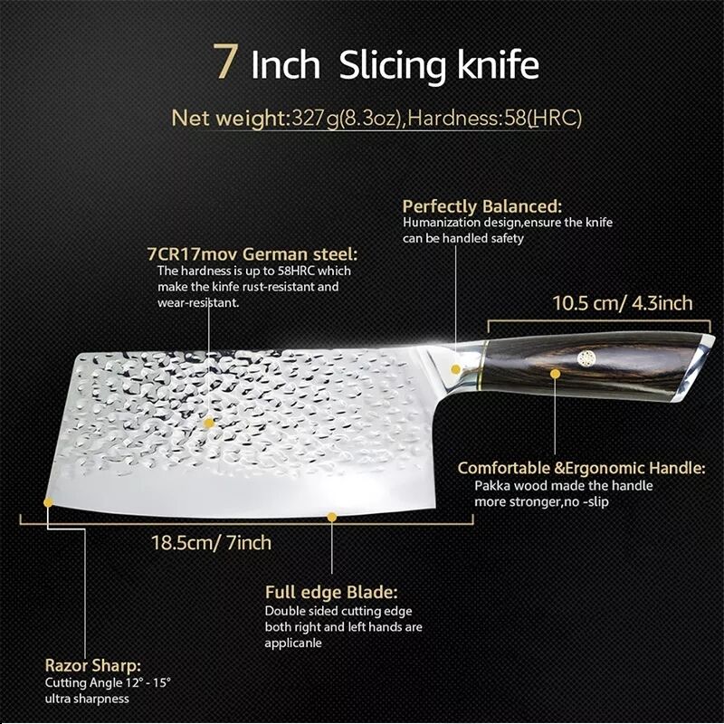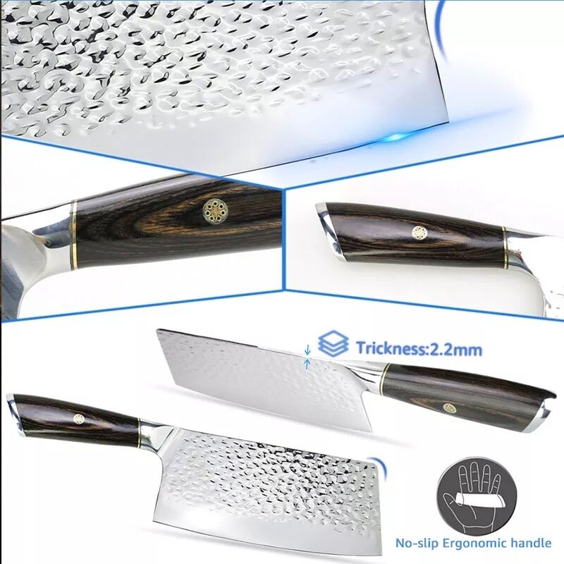 Introduction: Step into a realm of culinary precision with the Cleaver Knife Stainless Steel. In this comprehensive guide, we delve into the remarkable features of this exceptional knife, boasting a high-quality 7Cr17 stainless steel blade and a sturdy solid Wenge handle. Embrace the unparalleled chopping performance offered by its hand-forged, hammer-finished edge and the elegance of its full tang construction. Additionally, explore the personalization possibilities with engraved logos, making it a unique and cherished culinary tool. As we explore the impressive details of the Cleaver Knife Stainless Steel, you’ll understand why it is an essential tool for professional chefs and cooking enthusiasts seeking unmatched precision and reliability in their culinary endeavors.