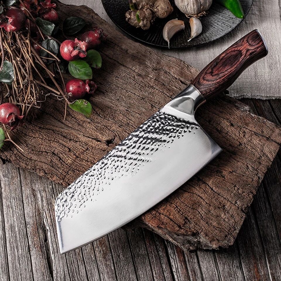 The Cleaver Knife Stainless Steel is not just a chopping marvel—it excels in various culinary techniques. From slicing to dicing and chopping, its hand-forged, hammer-finished edge and sturdy design make it a reliable tool for exploring diverse culinary creations. Whether preparing a classic stir-fry or intricate meat and vegetable dishes, this knife is your indispensable companion for precision and efficiency.