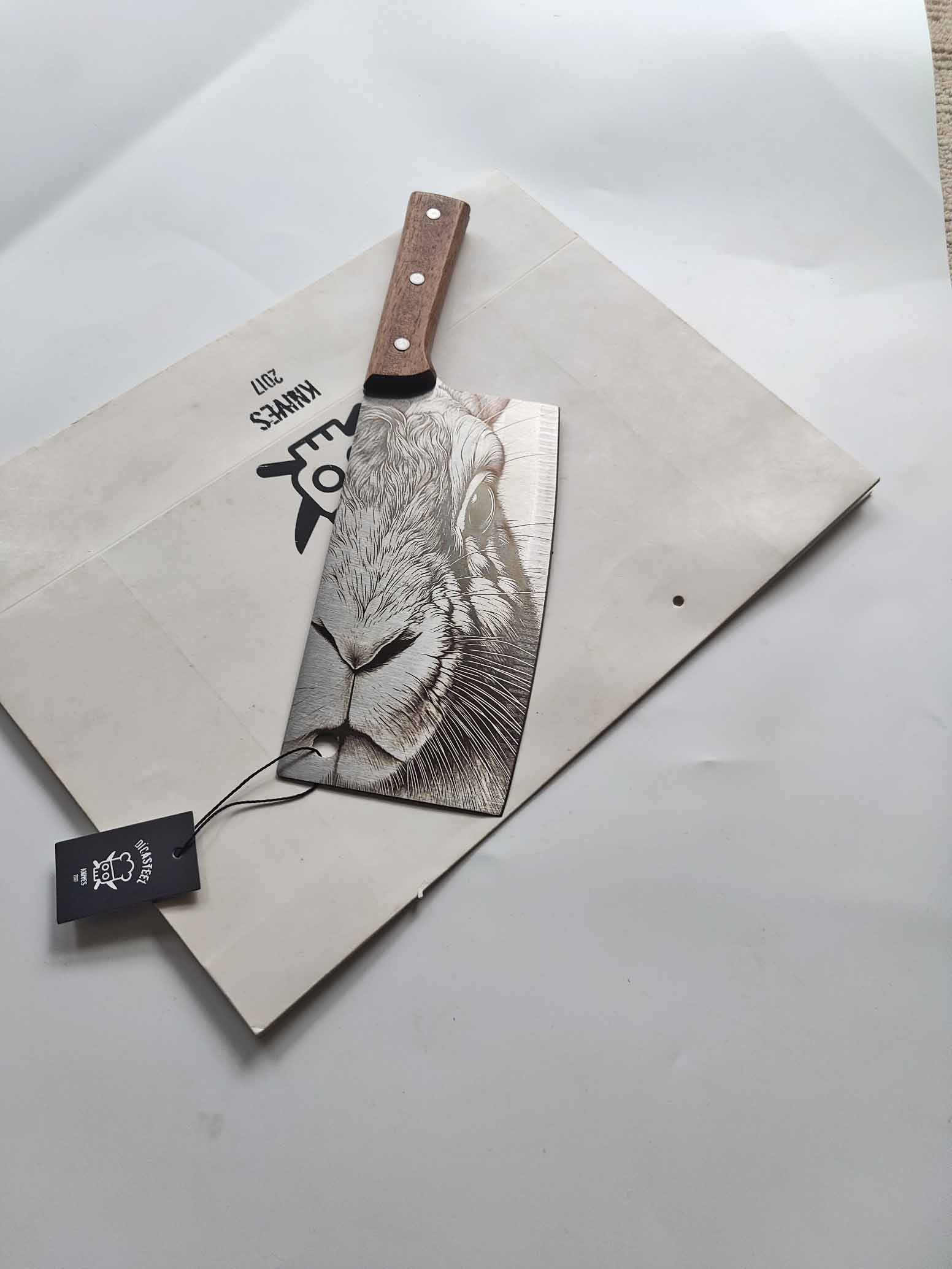 Built to perform in the kitchen and beyond, this cleaver delivers strength in every cut, while the delicate wild rabbit motif adds a hint of storytelling — making it a standout piece for both use and display.