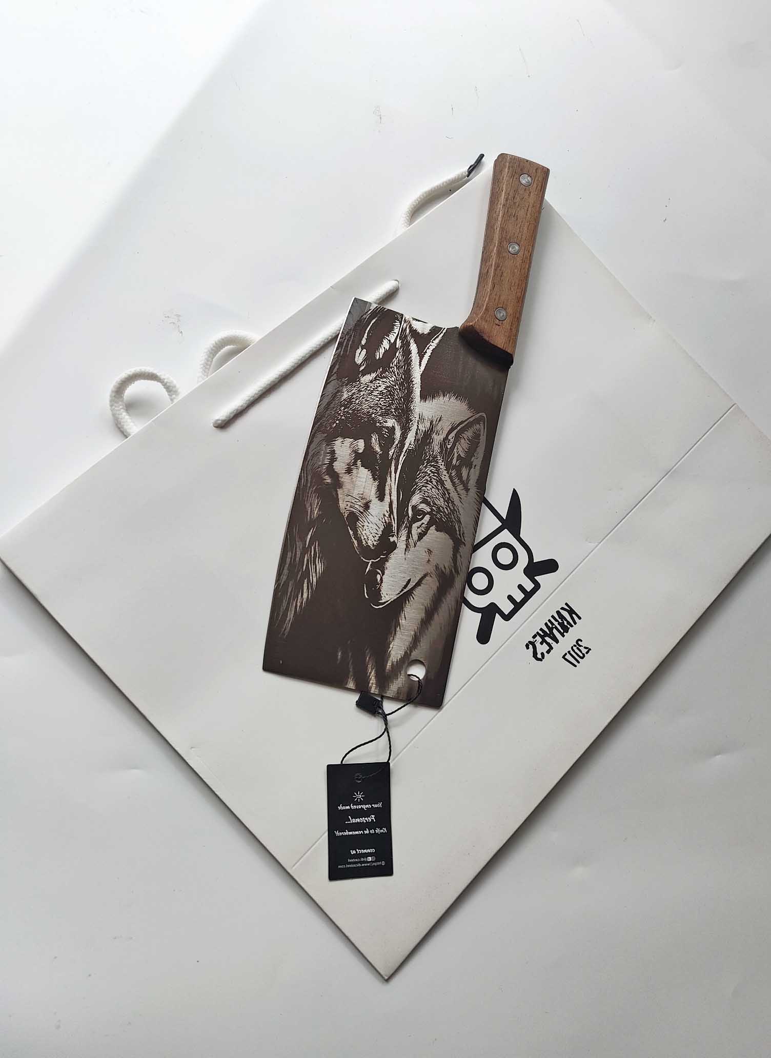 The Cleaver Knife with Eternal Wolves Engraving is more than just a culinary tool—it’s a symbol of unity, resilience, and instinctive strength. Crafted with precision and artistry, this knife represents the enduring spirit of the wolf: loyal, courageous, and fiercely protective. Designed for those who seek both performance and symbolism, this blade combines modern functionality with ancient meaning, creating a masterpiece that stands as an emblem of strength and connection.