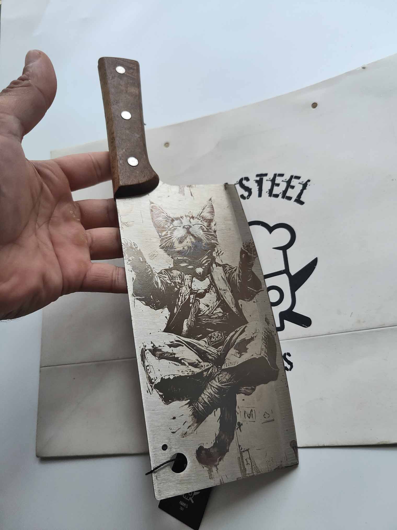 Cleaver Knife with Zen Cat Engraving – A Symbol of Balance, Calm, and Culinary Mastery