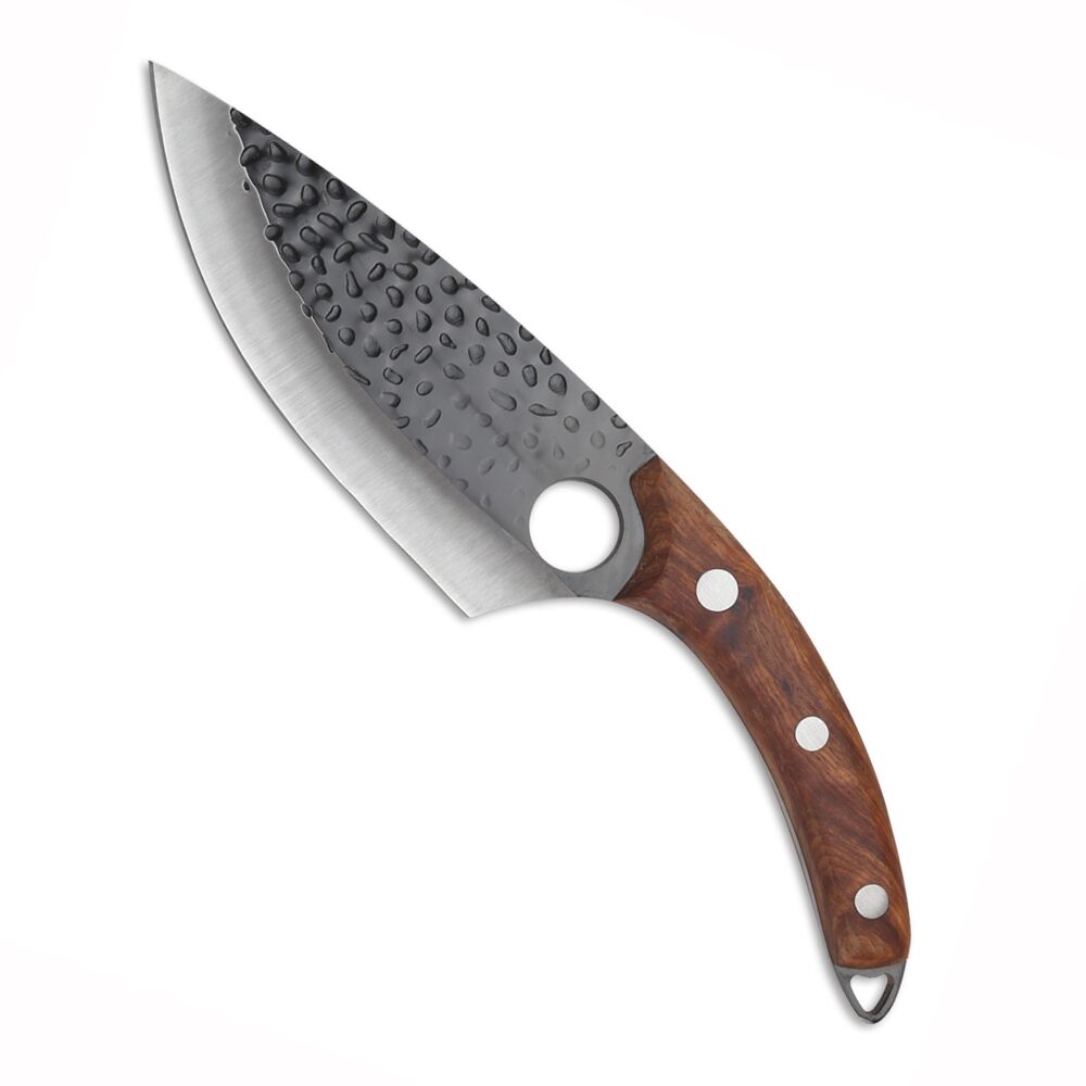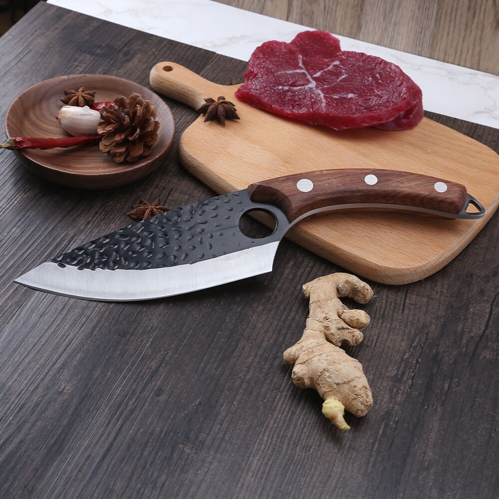 The handle of our Curved Forged Knife is a work of art on its own. Expertly crafted from luxurious rosewood, it offers a comfortable and secure grip, allowing you to wield the knife confidently and efficiently. Each handle boasts unique grain patterns and rich hues, adding a touch of elegance and sophistication to your kitchen.