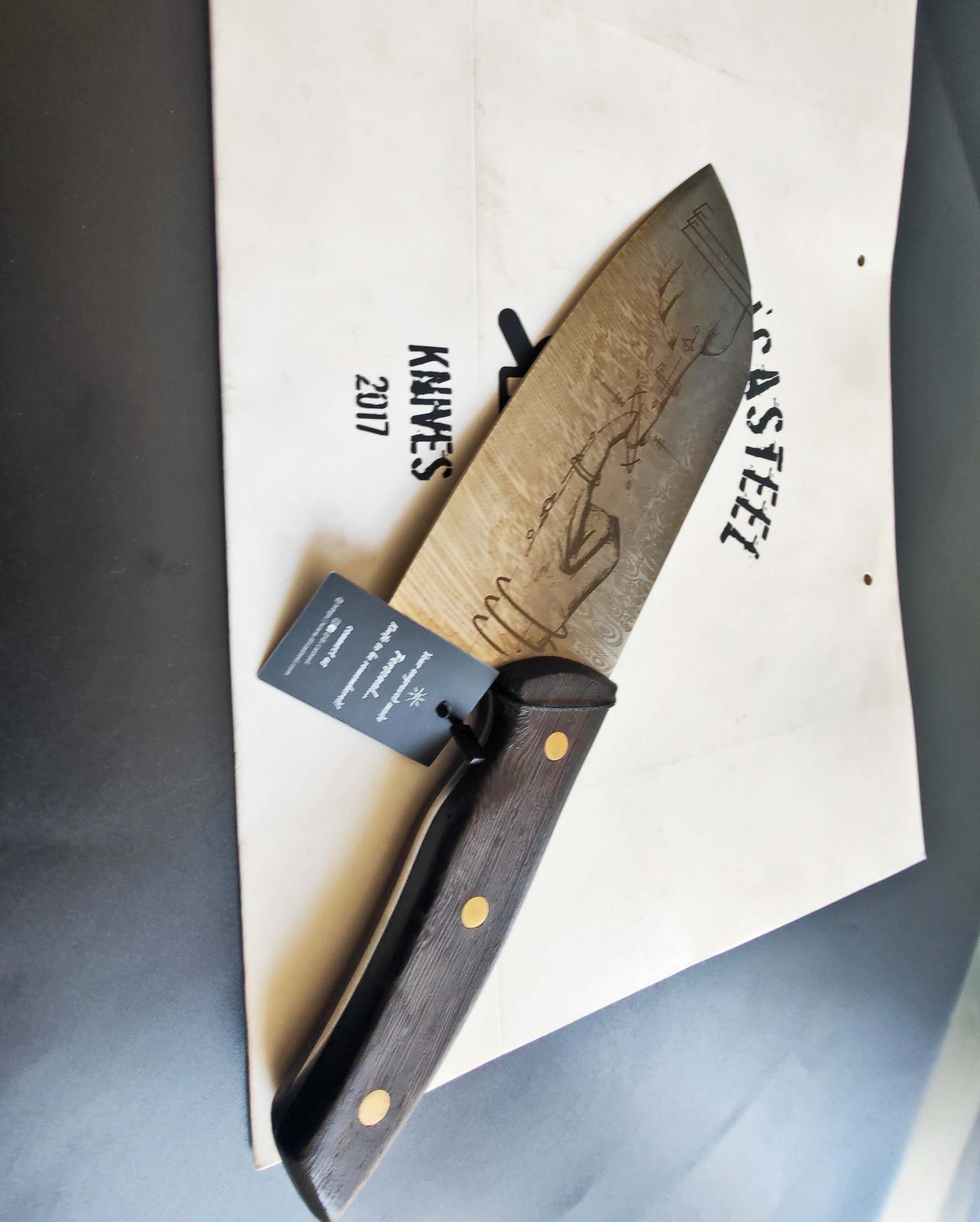 Custom Santoku Knife with Connection Hands Engraving: A Symbol of Unity and Craftsmanship