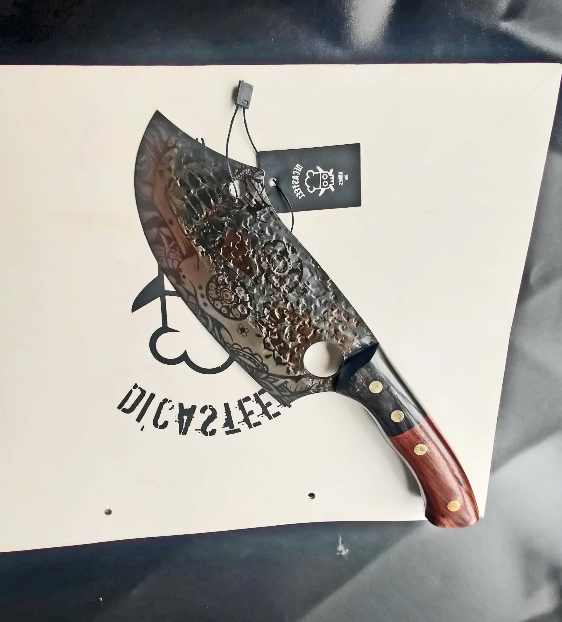 The Cleaver Knife with Skull Engraving capabilities a full tang layout, ensuring most electricity and sturdiness. The deal with, crafted from first-rate ebony wooden, is ergonomically designed to offer a cushty and steady grip, reducing hand fatigue within the course of extended use. The hand-stable, hammer-completed blade no longer simplest presents to its visible attraction however also complements its capability, taking into consideration easy and unique cuts.