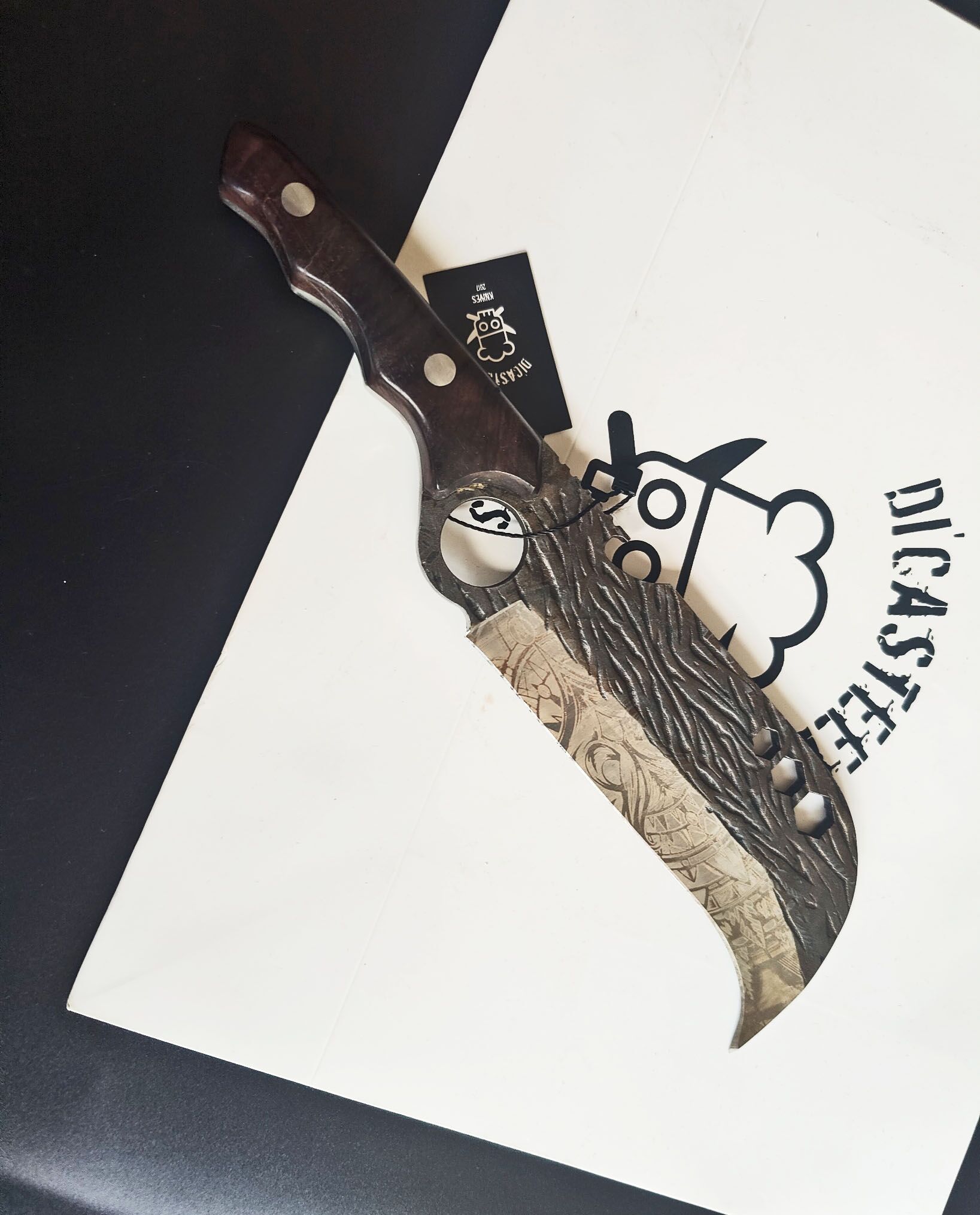 Now, let’s focus on the Owl Engraving, the unique feature that sets this Butcher Knife apart. The owl, known for its symbolism in various cultures, adds a touch of mystique and wisdom to this culinary tool. The engraving is not just a design; it’s a culinary signature, turning the knife into a piece of functional art. It’s not just about utility; it’s about making a statement with every cut.