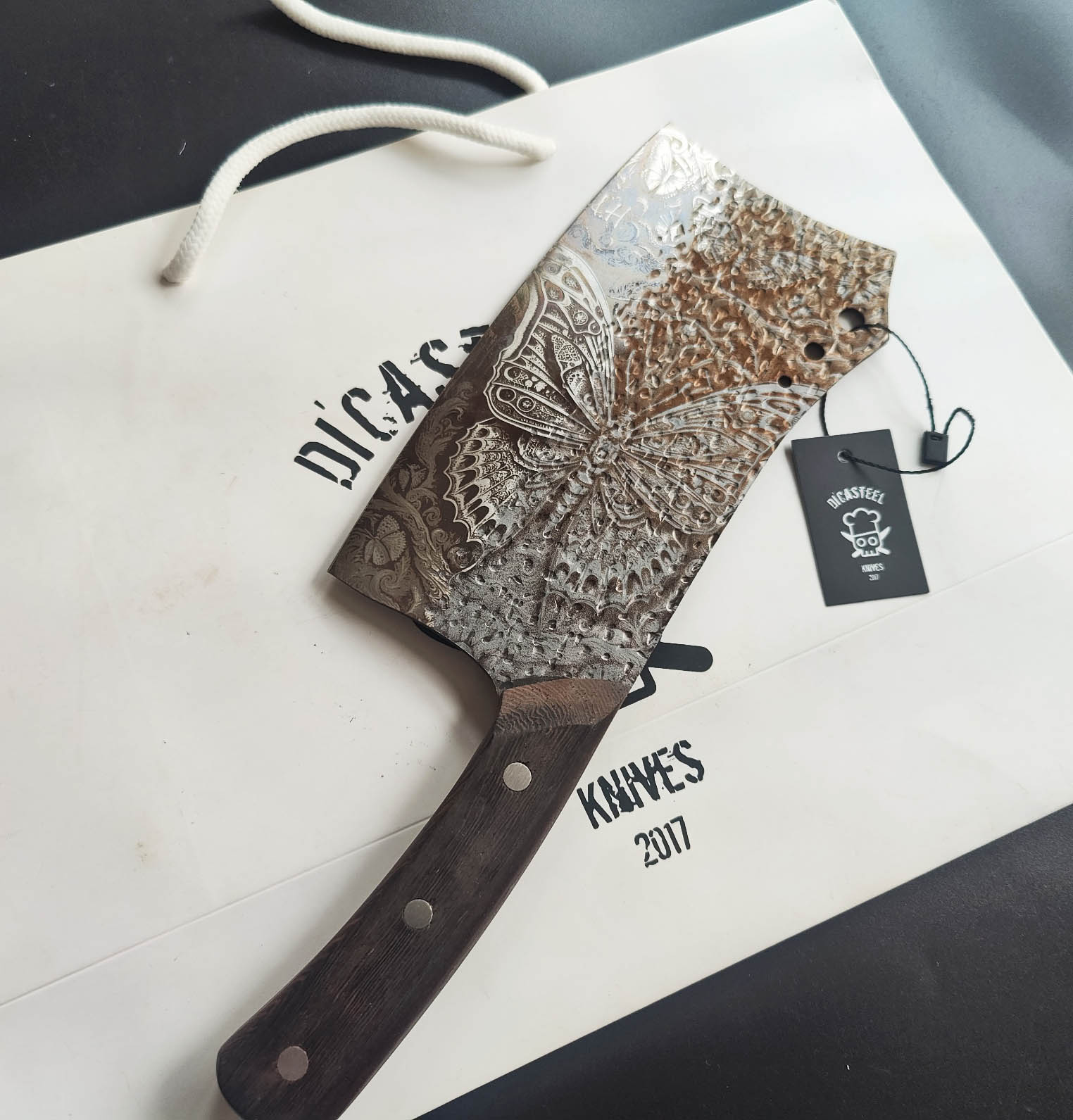 Elevate your culinary revel in with our Forged Cleaver Knife, a masterpiece embellished with mesmerizing butterfly engravings. Crafted from super 4Cr13 stainless-steel and providing a Wenge take care of, this knife not only excels in overall performance however additionally brings a touch of airy beauty to your kitchen.