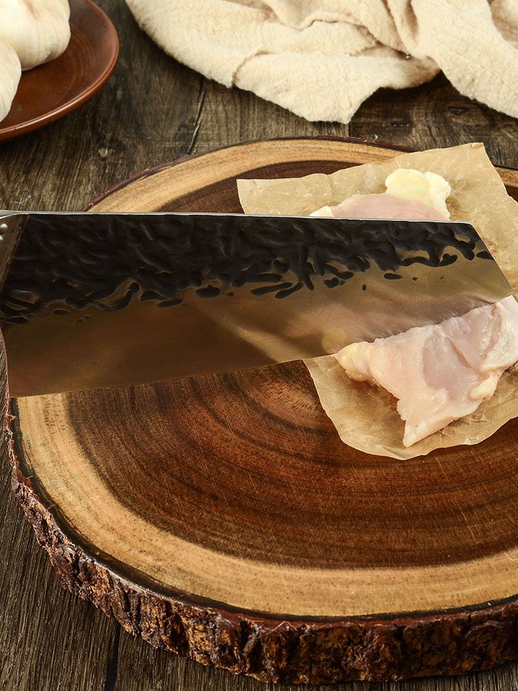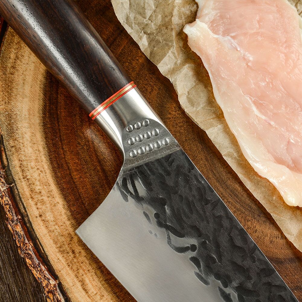 At the heart of the Forged Kiritsuke Knife lies its blade, crafted from high-quality 5Cr15 stainless steel. Renowned for its sharpness and durability, this blade effortlessly slices through various ingredients. Its hammer-finished surface further enhances its non-stick properties, ensuring a smooth cutting experience.
