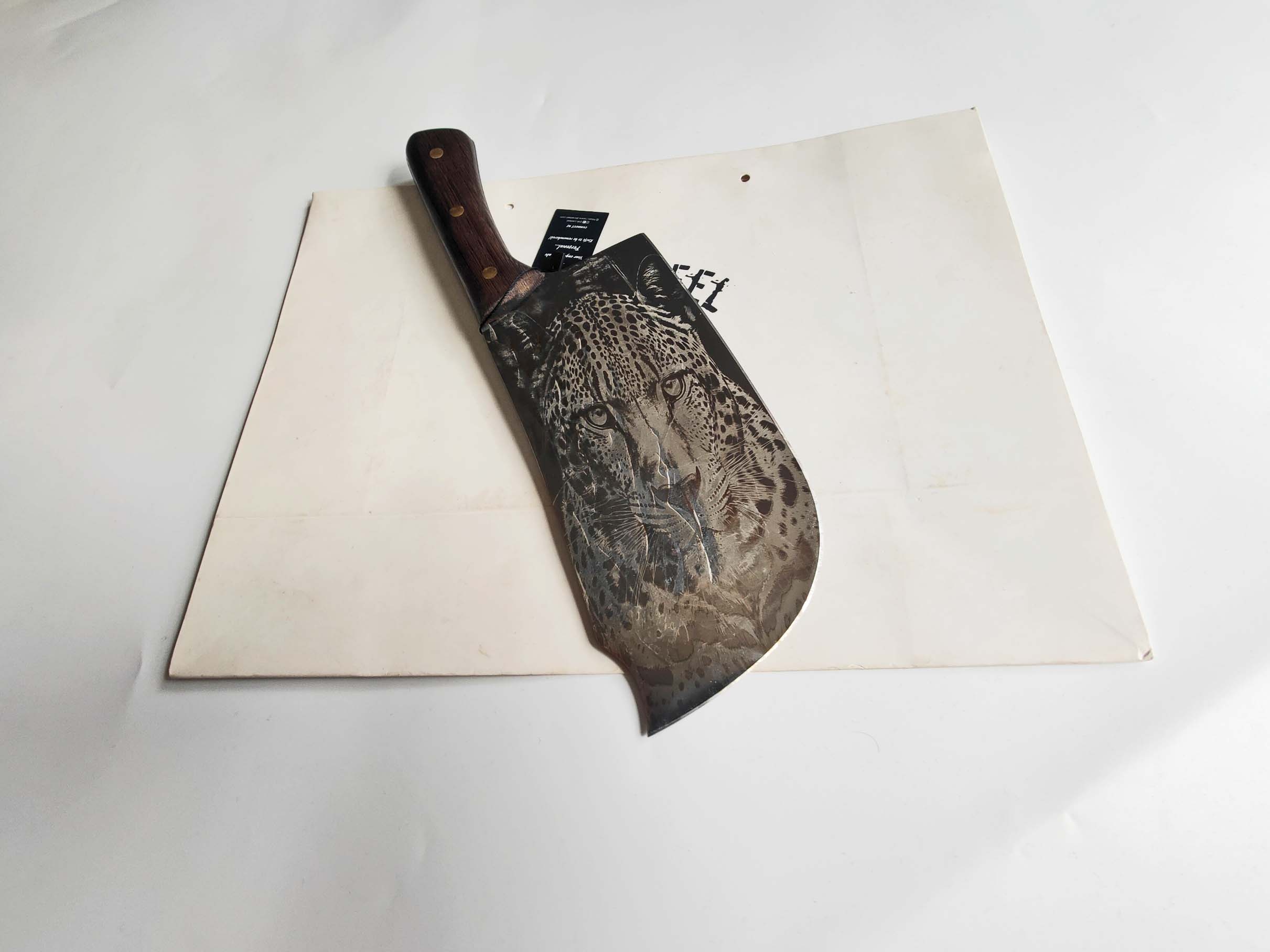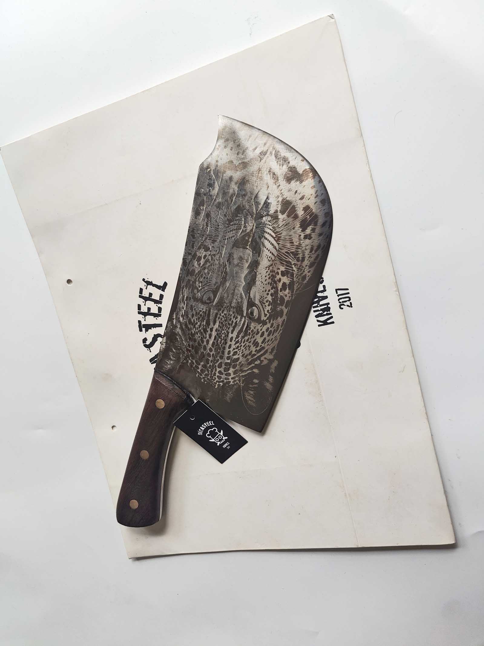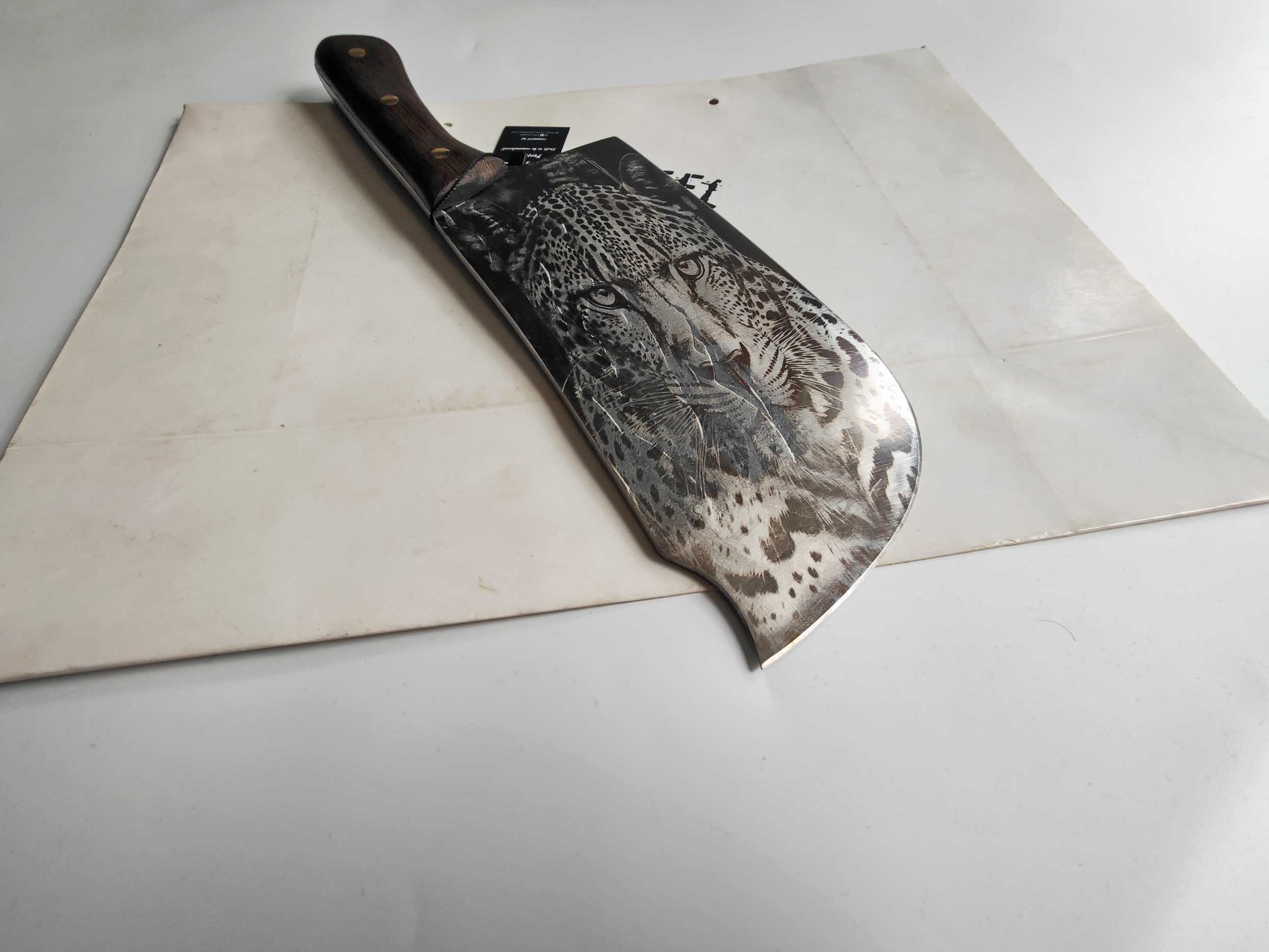 Heavy Cleaver Knife with Craft Jaguar Engraving – Power, Precision, and Artistry