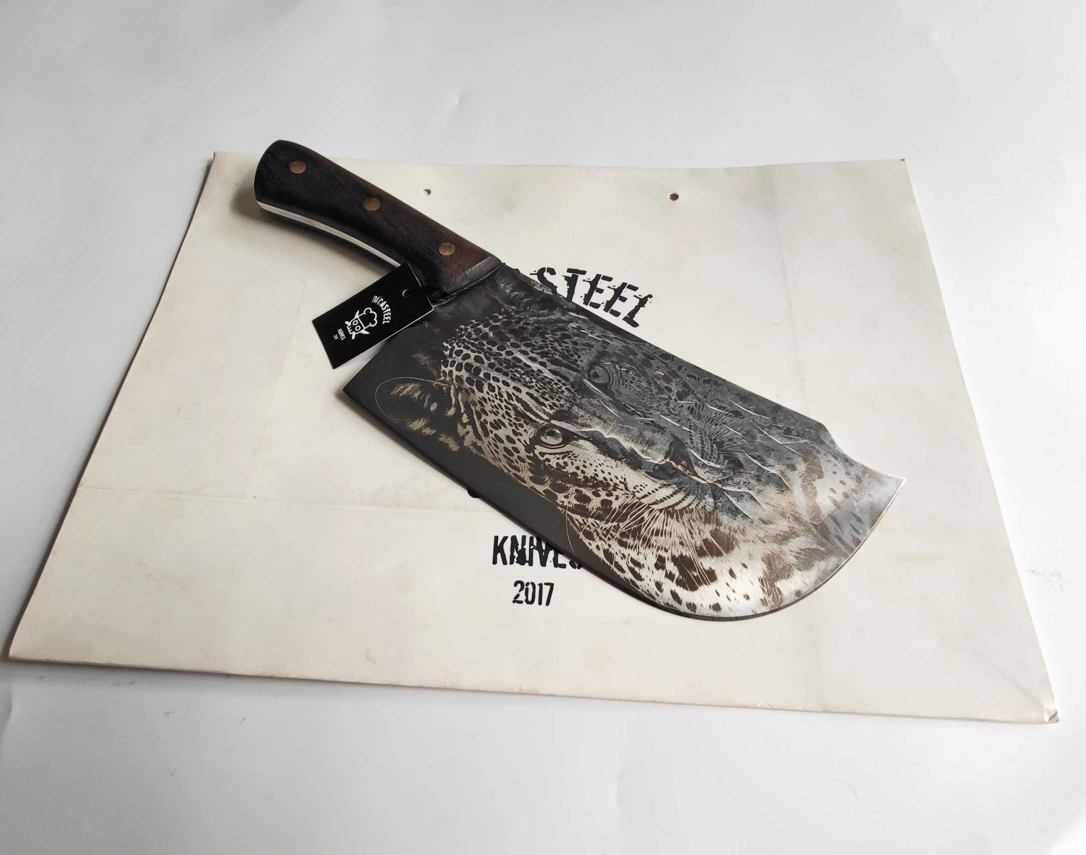 This Cleaver Knife with Craft Jaguar Engraving is an all-purpose slicing tool, ideal for: