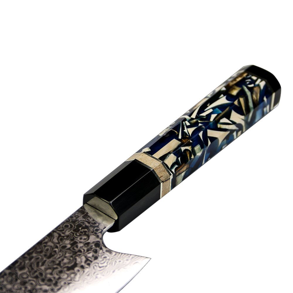 With the Japanese Kiritsuke Knife Resin, a masterwork that fuses modern artistry with Japanese tradition, indulge in the art of culinary excellence. This knife is more than just a simple culinary implement; it symbolizes your love of fine dining and dedication to accuracy. Let us walk you through the outstanding qualities that make the Japanese Kiritsuke Knife Resin handle unique.