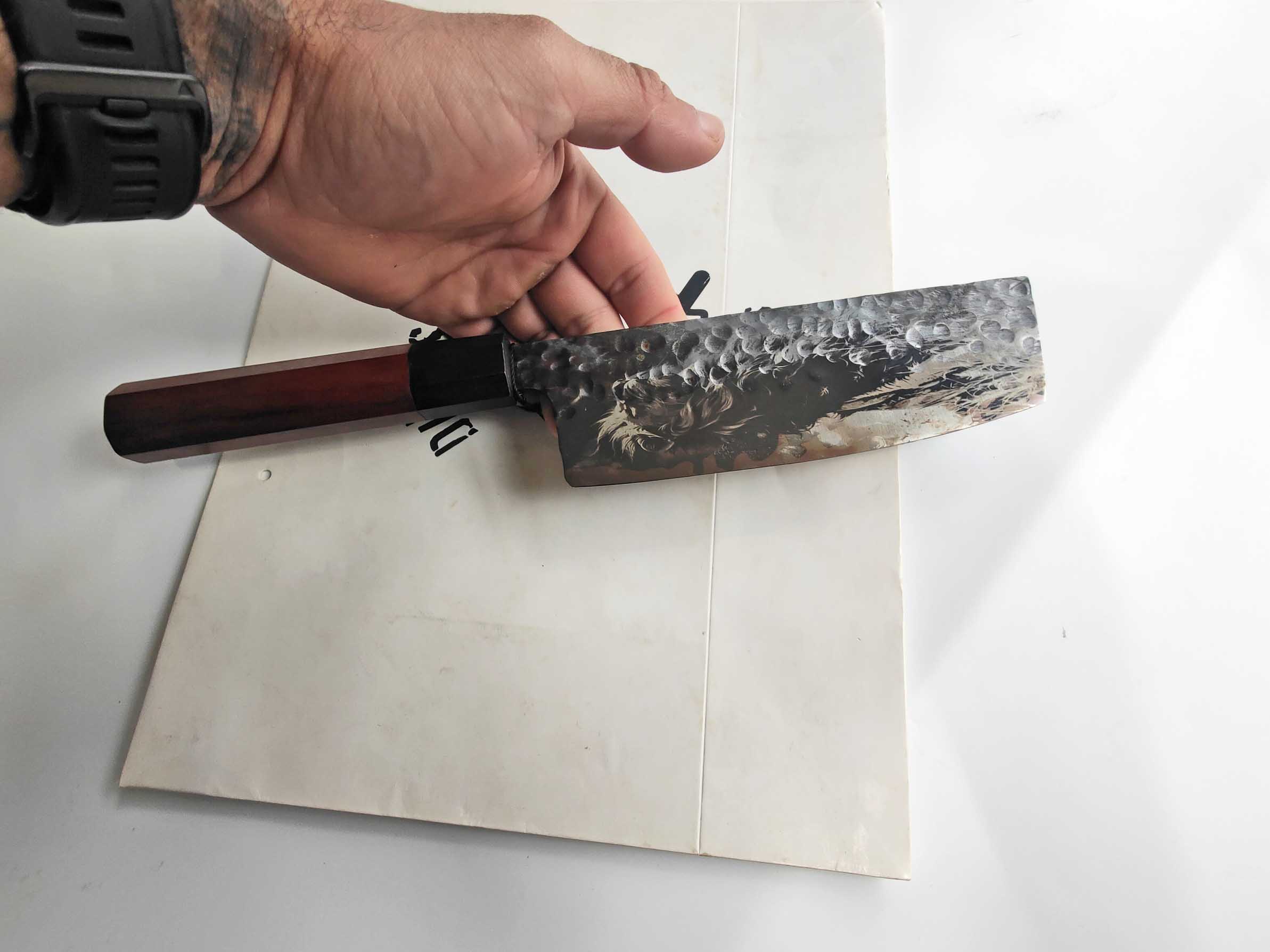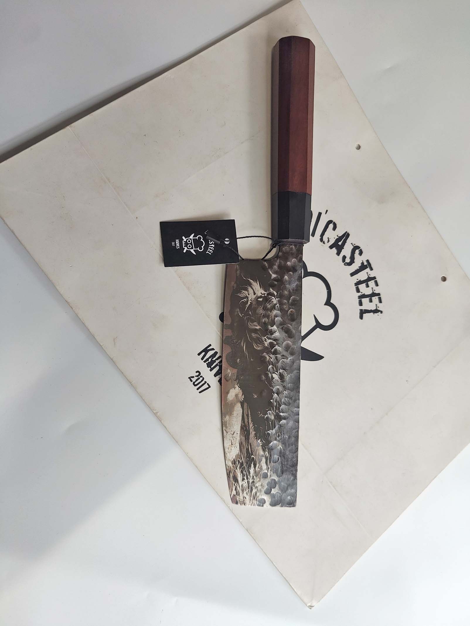 Japanese Nakiri Knife with Lion Engraving – A Blend of Precision, Tradition, and Artistry