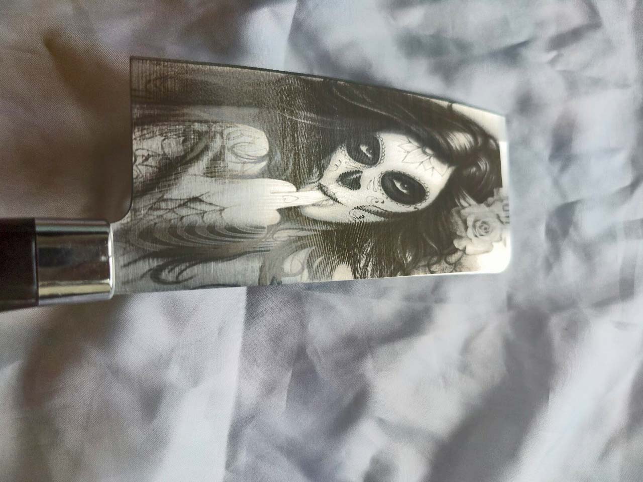 With the La Calavera Catrina Cleaver Knife, you may experience the ideal fusion of artistic greatness and culinary excellence. This knife is a monument to the beauty of cultural history thanks to its alluring laser-printed pattern and diverse use. Add your name or company logo for no additional charge, and let it become a prized addition to your kitchen or a meaningful present for someone special. Celebrate La Calavera Catrina’s magnificence by placing your order right now.