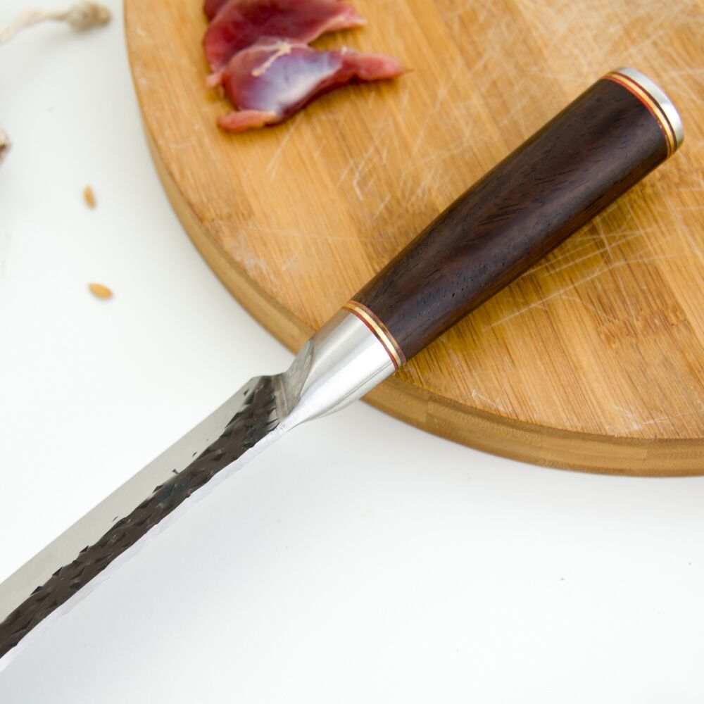 In conclusion, the multi-functional butcher knife is a true culinary gem, ready to elevate your cooking journey to new heights of artistry and versatility. With its robust 5Cr15 stainless steel blade, elegant ebony wood handle, and precise hammer finish, this knife embodies craftsmanship and functionality.