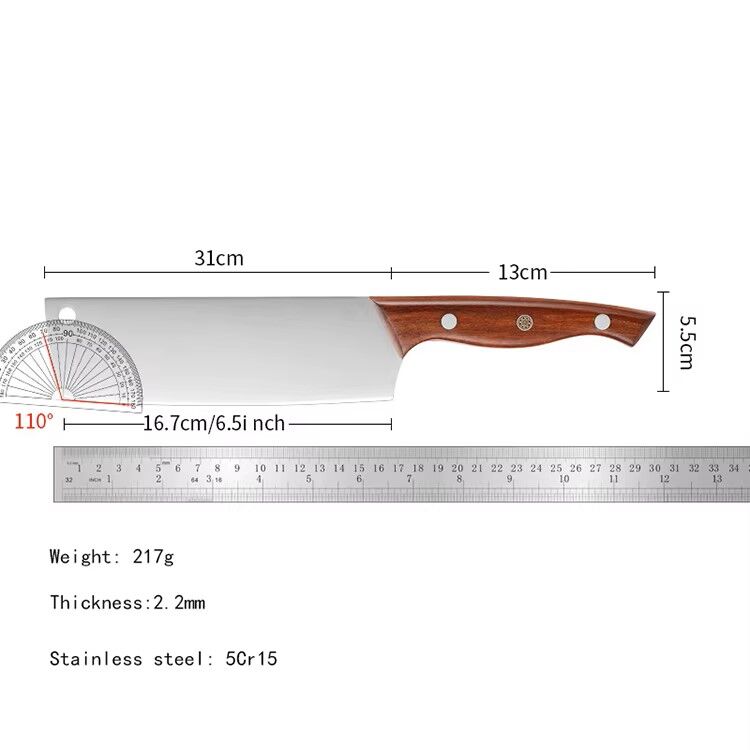 The blade thickness of 2.2mm gives the knife a perfect balance between strength and slicing finesse. It allows clean, effortless cuts while maintaining stability during repetitive chopping tasks. Whether you are slicing delicate herbs or chopping dense vegetables, the blade performs consistently and smoothly.