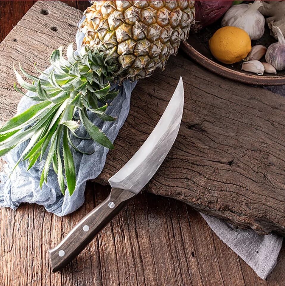 Peeling Knife Vegetable’s handle is masterfully made from wood, offering a secure grip and a touch of class to your kitchen necessities. Beyond veggies, they may be used on thick meats, bones, birds, fruits, and more. Due to its adaptability, it is a necessity for many cooking jobs, increasing your kitchen productivity.