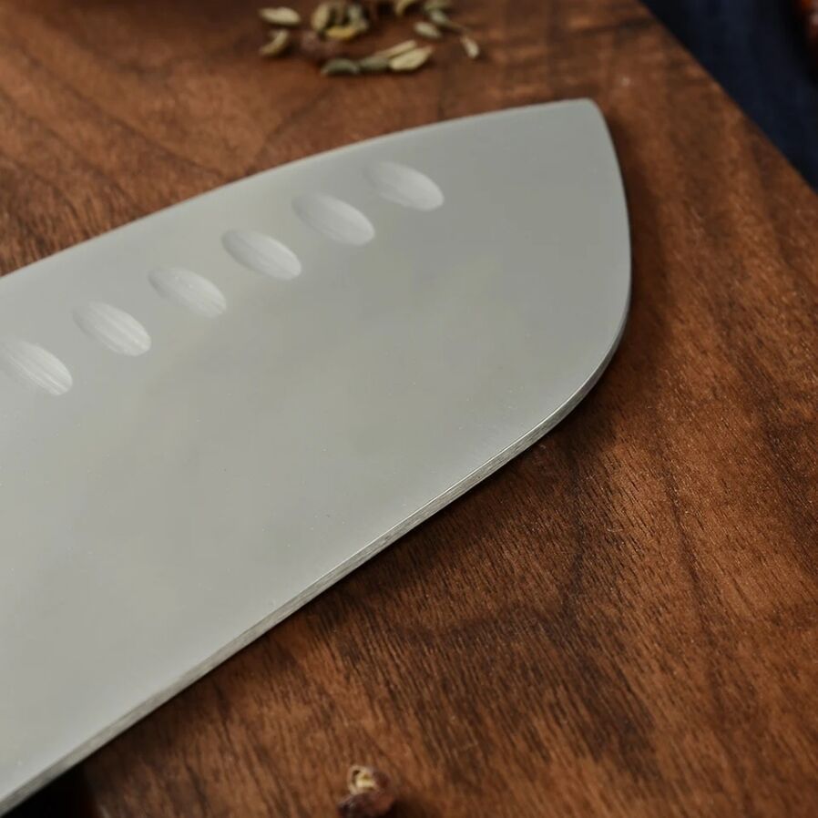 The Santoku Slicing Knife redefines the idea of blade thickness with its greatest 3mm profile. This thickness strikes a balance among robustness and precision. It resultseasily glides through diverse elements, whether it’s slicing via delicate sashimi or tackling denser cuts of meat, making it a flexible companion within the kitchen.