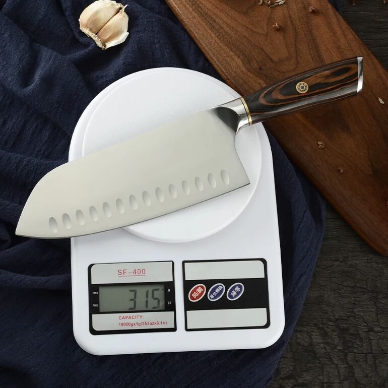Weighing in at 315g, the Santoku Slicing Knife is a featherlight precision device. This characteristic, blended with its balanced layout, contributes to the knife’s maneuverability. Every movement becomes an extension of your culinary creativity.