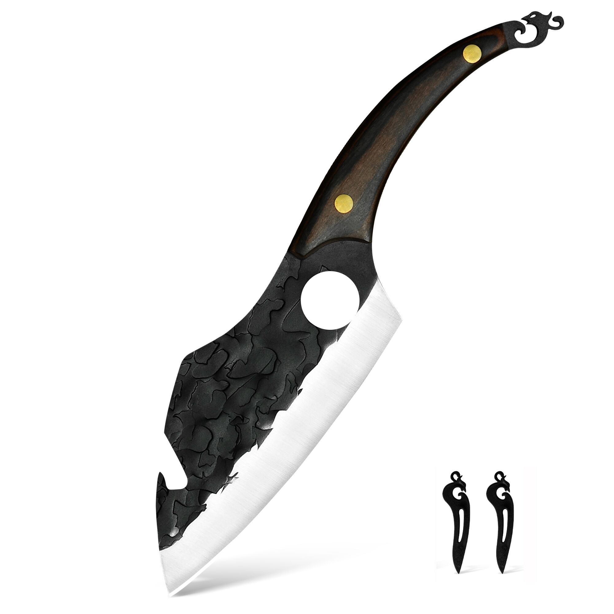 The Serbian Cleaver Curved Knife’s distinctive bottle opener blade design boosts its functionality while also showcasing the craftsmanship of its creators. This creative modification gives this functional kitchen necessity a very unique touch of personality.