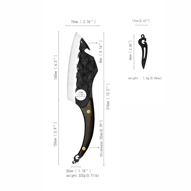 The Cleaver Curved Knife was expertly crafted and is the pinnacle of adaptability. It is ideal for a variety of culinary jobs, from mincing herbs to slicing luscious meats, thanks to its 31*7cm size and 16cm blade length.